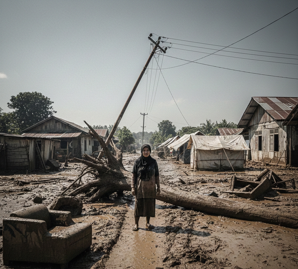 TERITORIAL24.COM,ACEH TAMIANG-Hampir sebulan pasca-banjir bandang menghajar Aceh Tamiang, aroma lumpur busuk dan sisa kayu gelondongan masih menyengat di hidung warga.