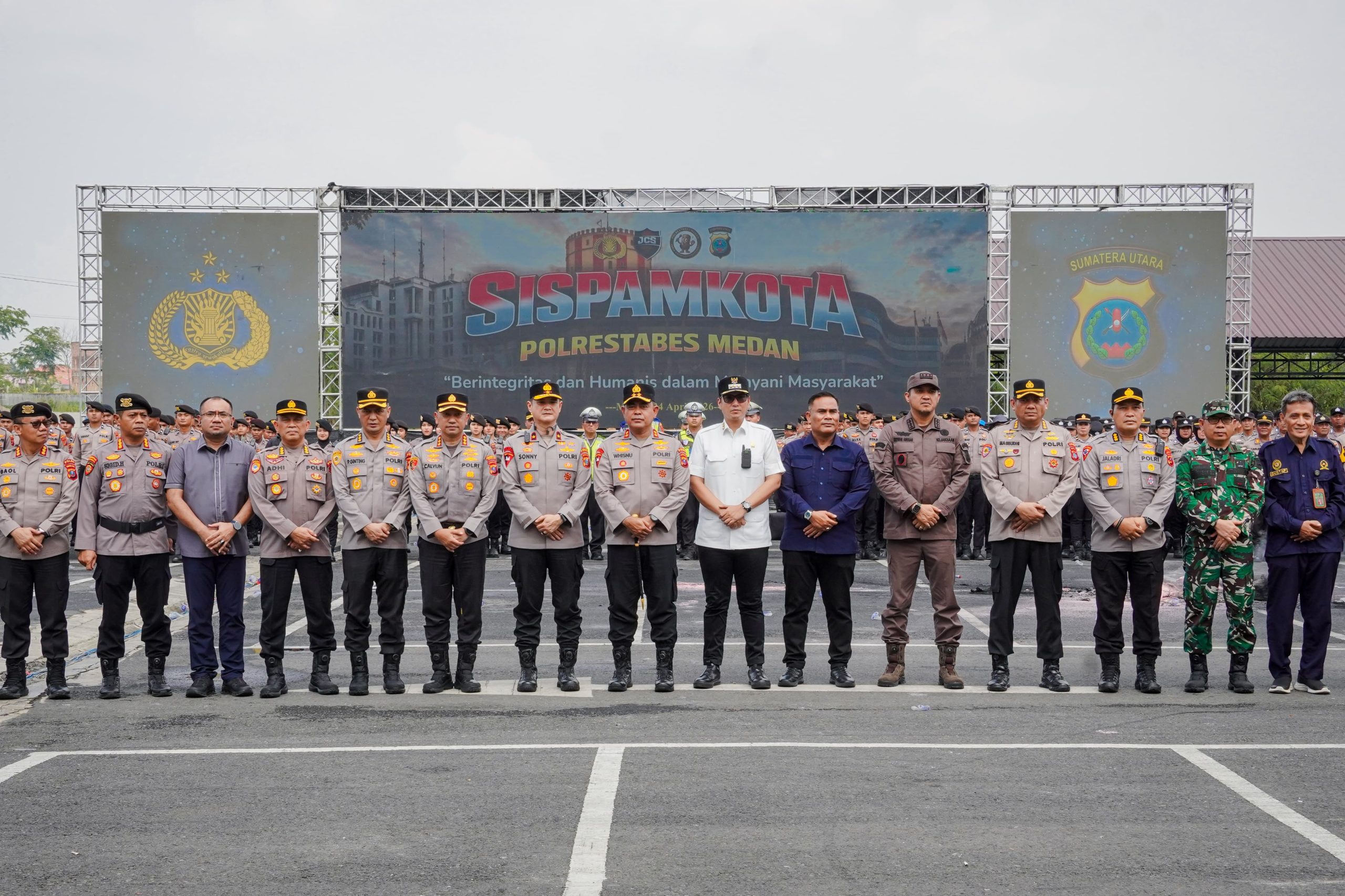 TERITORIAL24.COM, MEDAN – Komitmen menjaga keamanan dan ketertiban masyarakat di Kota Medan semakin diperkuat melalui Apel Akbar dan Deklarasi Sabuk Kamtibmas yang dirangkaikan dengan simulasi Sistem Pengamanan Kota (Sispamkota) di Mapolda Sumatera Utara, Jumat (24/4/2026).