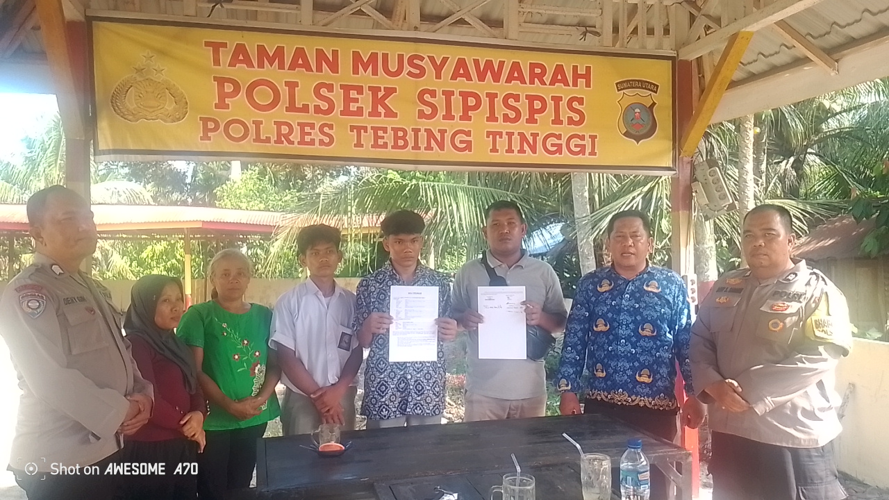 Kali ini, Bhabinkamtibmas Polsek Sipispis Bripka Denni Ginting bersama Aipda Dedi S berhasil memediasi permasalahan penganiayaan yang melibatkan seorang warga dengan dua pelajar.