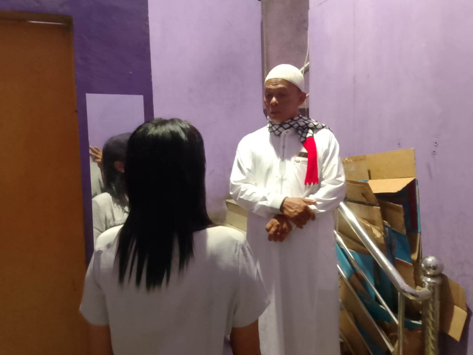 Pembina MTPI Tebing Tinggi, Ustadz Muslim Istiqomah Sinulingga, yang turut hadir dalam kegiatan tersebut, memberikan nasihat dan pembinaan langsung kepada para pengunjung yang terjaring.