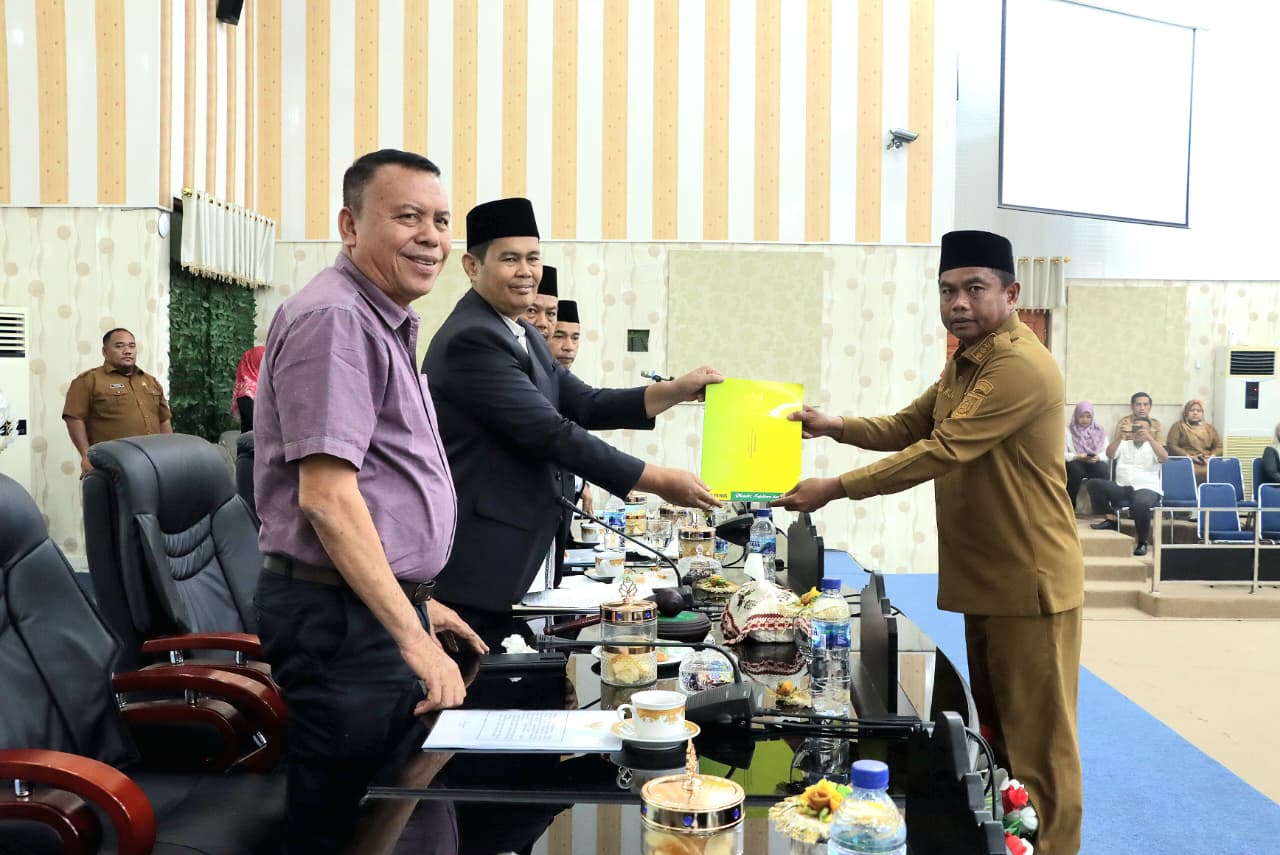 Jawaban tersebut mencakup pembahasan Rancangan Peraturan Daerah (Ranperda) tentang Perubahan APBD Tahun Anggaran 2025 serta tanggapan atas dua Ranperda inisiatif DPRD, yaitu Ranperda Pemberdayaan dan Perlindungan Petani dan Ranperda Hari Jadi serta Lambang Daerah.