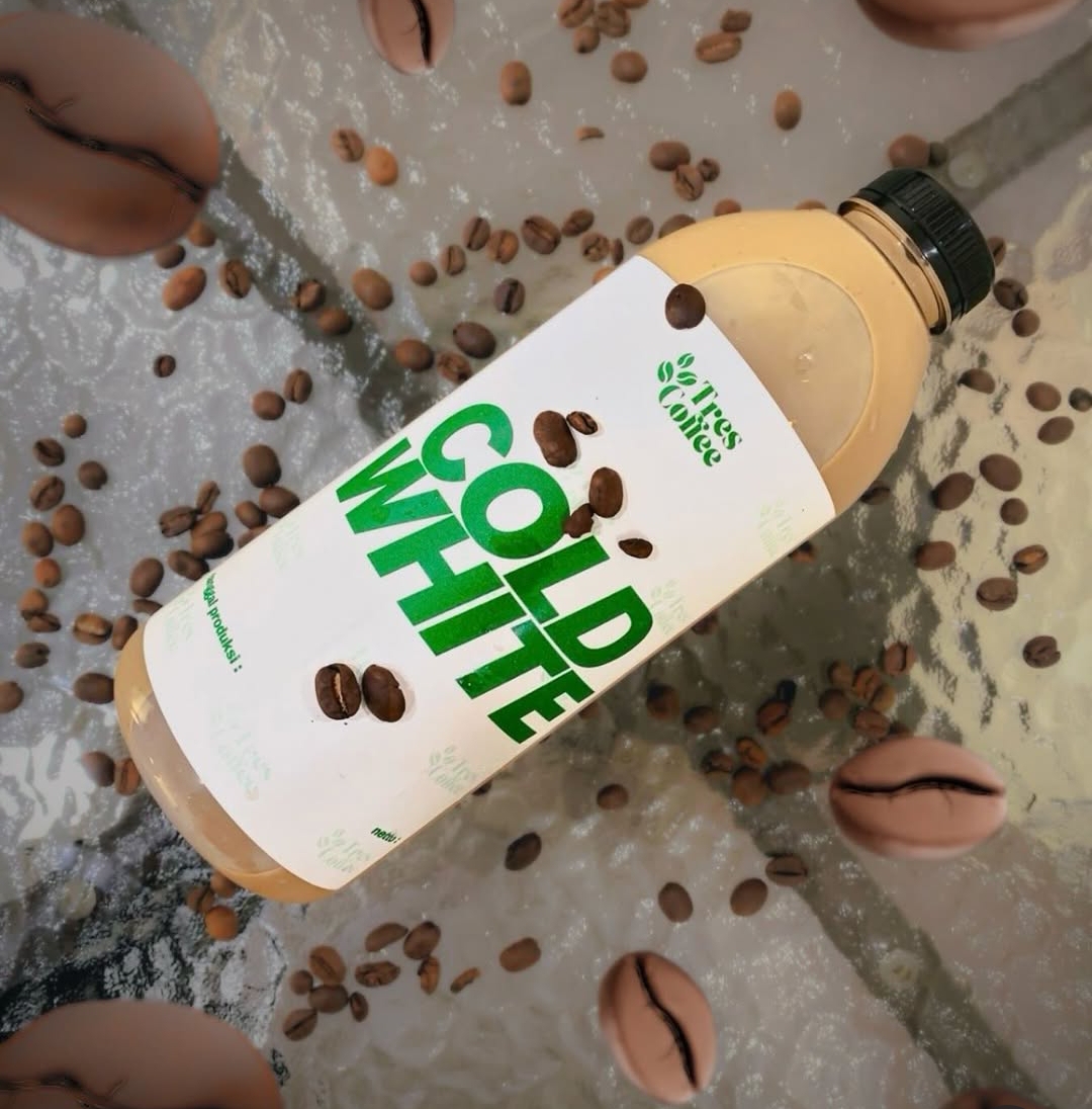 Dengan kondisi jalanan yang licin dan cuaca tak menentu, Tres Coffee mengemas Cold White dalam botol higienis yang aman dibawa dan tidak mudah tumpah.