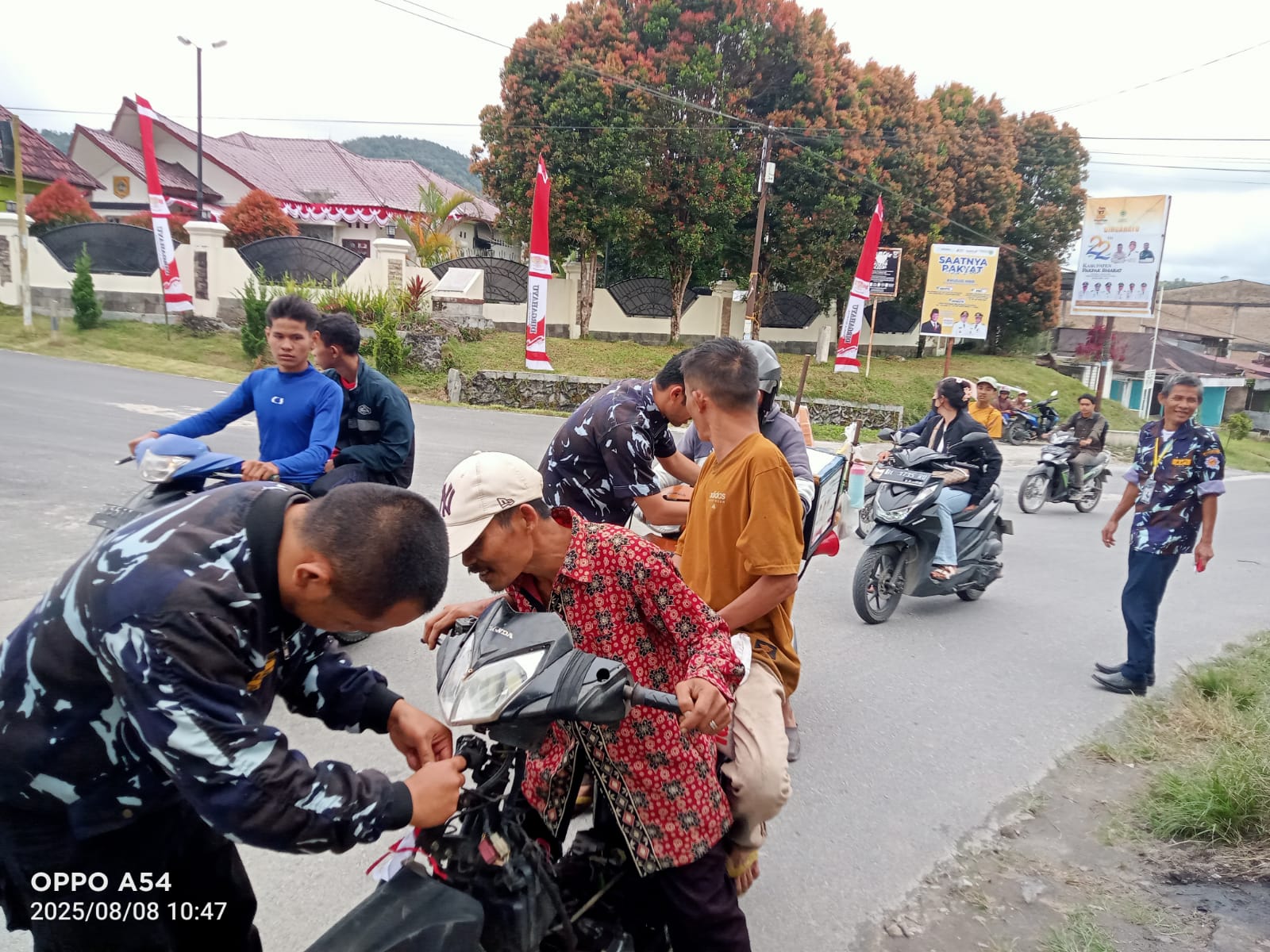 TERITORIAL24.COM, SALAK – Menjelang HUT RI ke-80, DPD Angkatan Muda Pembaharuan Indonesia (AMPI) Kabupaten Pakpak Bharat memilih cara sederhana tapi kena di hati: membagikan Bendera Merah Putih ke warga yang melintas di simpang RSUD Desa Salak I, Kecamatan Salak, Jumat (8/8/2025) pagi.
