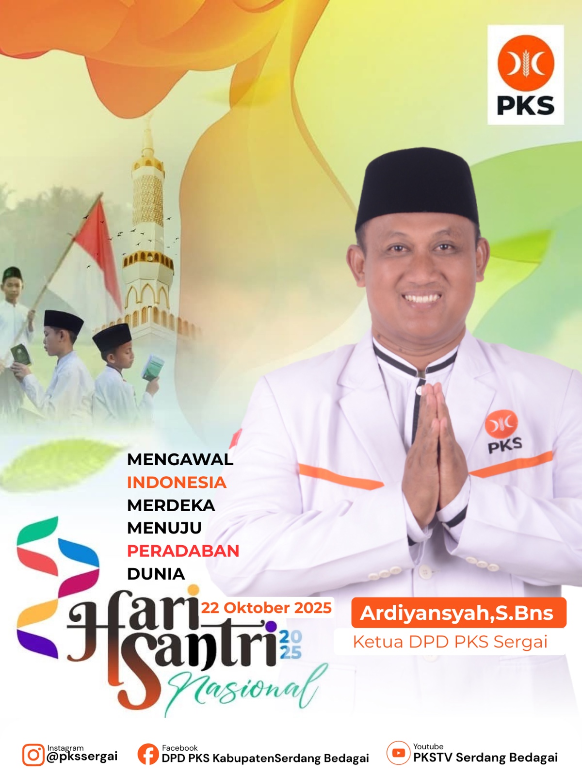 TERITORIAL24.COM, Serdang Bedagai-Dalam rangka memperingati Hari Santri Nasional 2025, Dewan Pengurus Daerah (DPD) Partai Keadilan Sejahtera (PKS) Kabupaten Serdang Bedagai (Sergai) menyampaikan ucapan selamat dan apresiasi kepada seluruh santri di Indonesia yang telah berperan besar dalam menjaga nilai-nilai keislaman, keilmuan, dan kebangsaan.