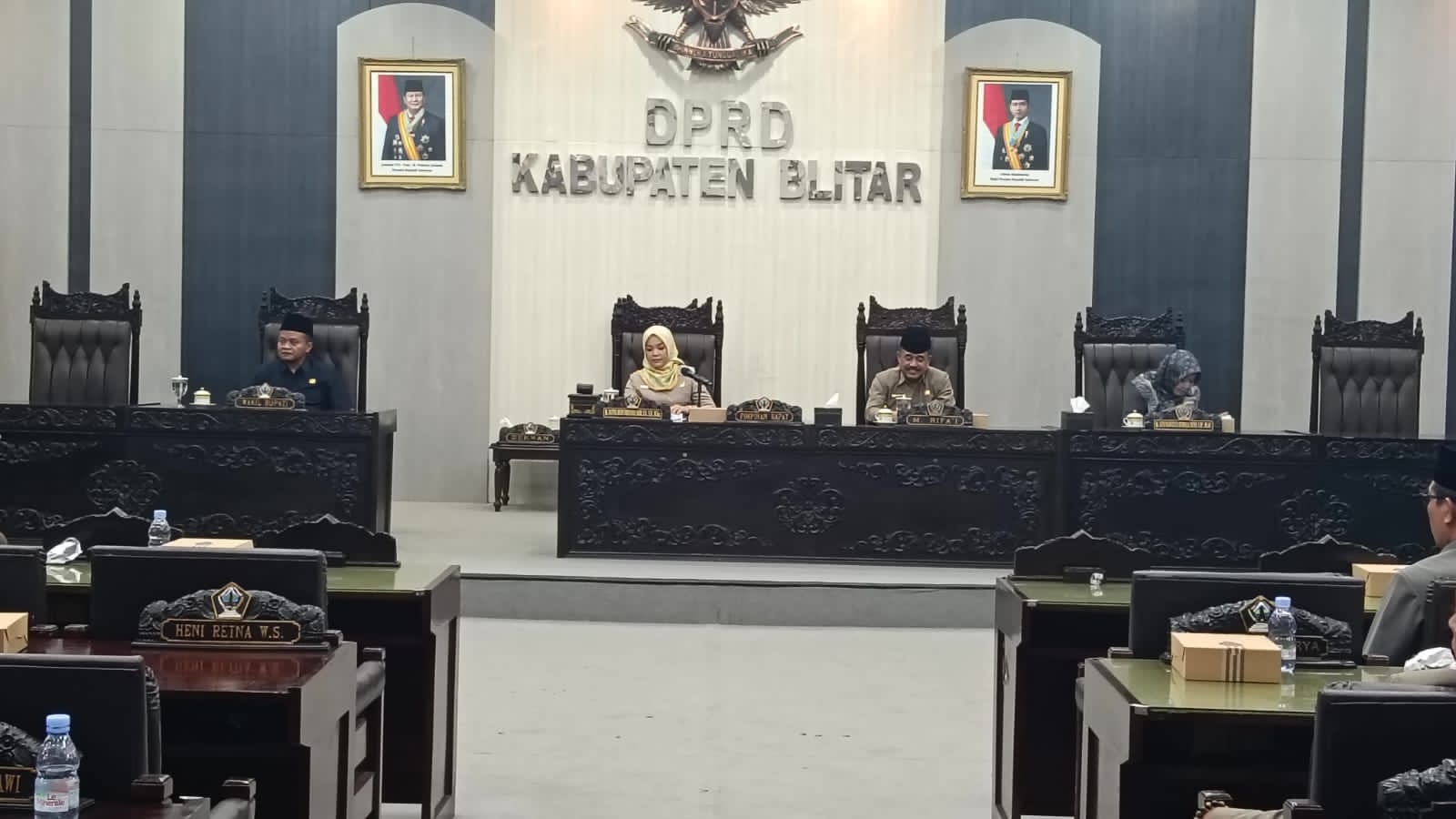 Rapat paripurna tersebut dipimpin oleh Wakil Ketua II DPRD Kabupaten Blitar Hj. Ratna Dewi Nirwana Sari, S.S., S.H., M.Kn., didampingi Wakil Ketua I H. M. Rifa’i dan Wakil Ketua III Hj. Susi Narulita Kumala Dewi, S.IP., M.AP. Turut hadir Sekretaris DPRD Haris Susianto, S.H., M.Si., Wakil Bupati Blitar H. Beky Herdihansah, jajaran Forkopimda, pimpinan OPD, anggota DPRD, serta tamu undangan lainnya.