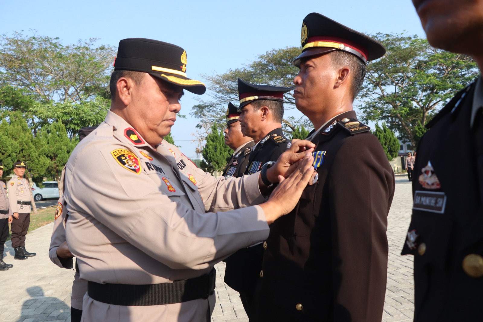 Penghargaan tersebut diberikan kepada IPTU Sakban Hasibuan dan IPTU Rudy Achyar atas masa pengabdian 32 tahun, IPDA Endi Valentino dan AIPTU Benny Ater Munthe atas pengabdian 24 tahun, serta BRIPTU Andrye Hartanto dan BRIPTU Kokri Gultom atas pengabdian 8 tahun.