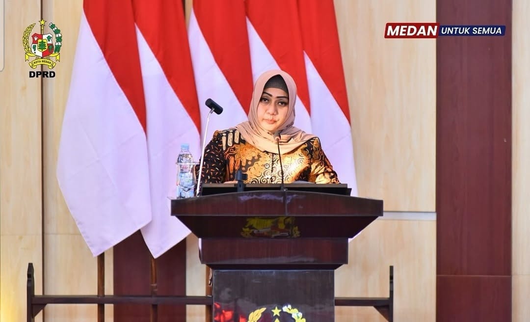 Sekretaris Fraksi Hanura-PKB, Lailatul Badri, menyampaikan pandangan umum fraksinya terhadap Laporan Pertanggungjawaban Pelaksanaan APBD Kota Medan Tahun Anggaran 2024 dalam rapat paripurna di gedung DPRD Medan, Selasa (10/6/2025).