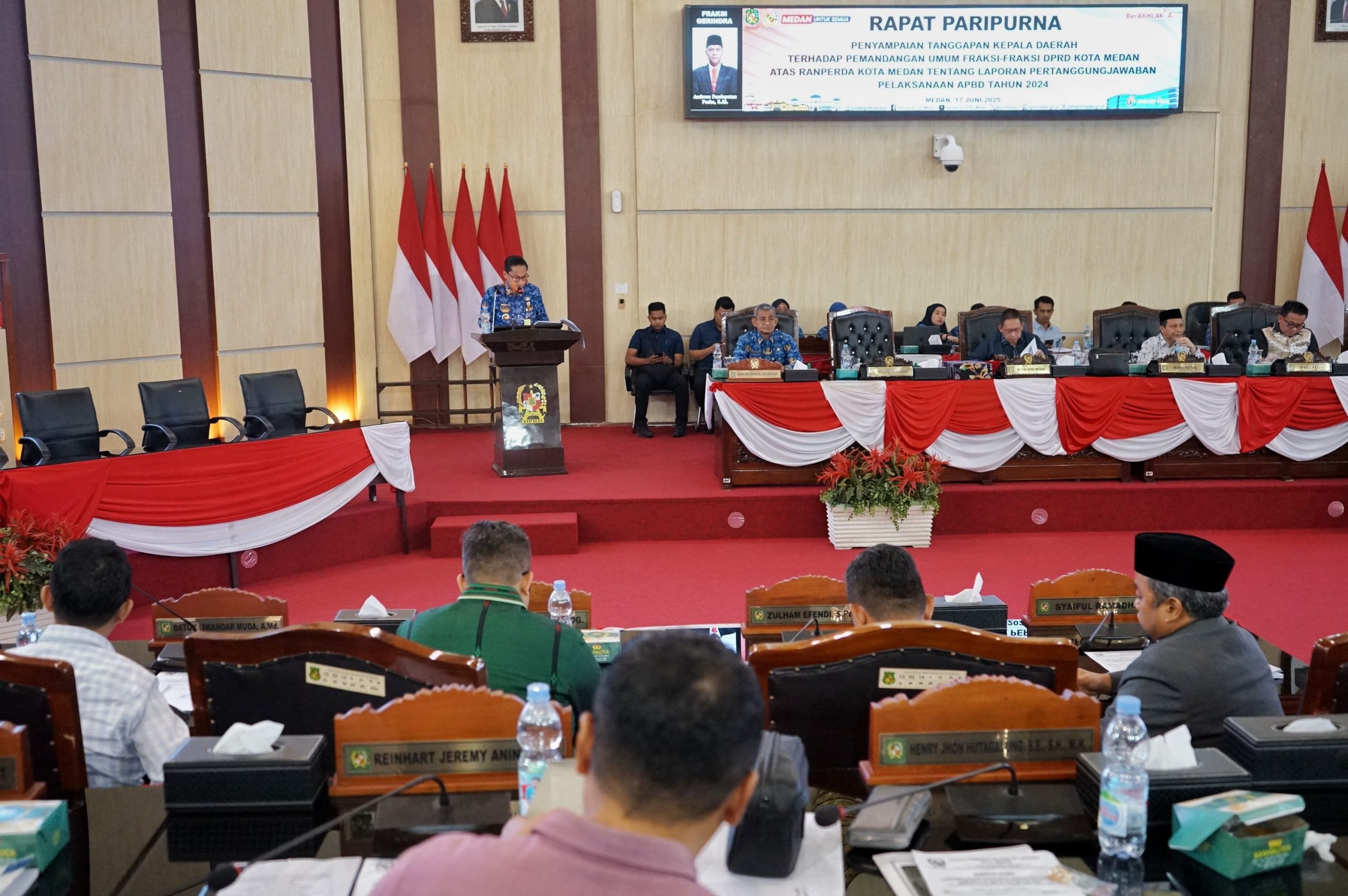 Sidang paripurna dipimpin Ketua DPRD Wong Chun Sen, didampingi para wakil ketua, serta dihadiri Wali Kota Medan Rico Tri Putra Bayu Waas dan Wakil Wali Kota Zakiyuddin Harahap. Sejumlah pimpinan OPD Pemkot Medan juga hadir.