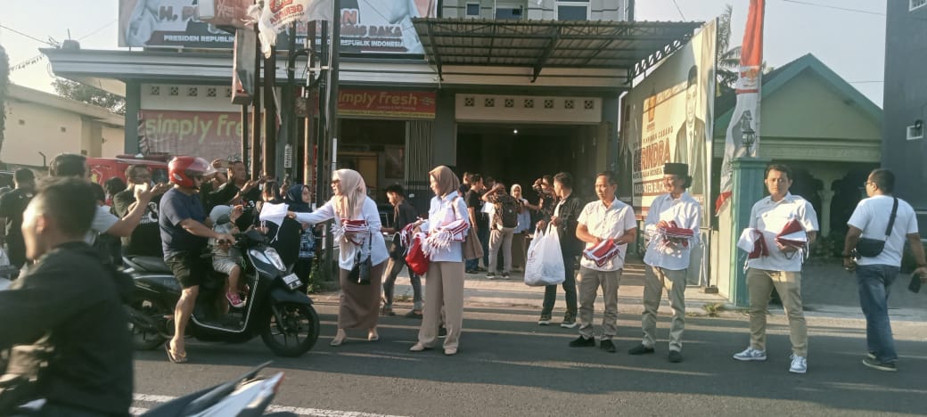 Sebanyak 500 bendera dibagikan secara langsung kepada warga yang melintas. Meski instruksi dari pusat baru diterima sehari sebelumnya, DPC Gerindra Blitar bergerak cepat mengoordinasikan aksi ini.