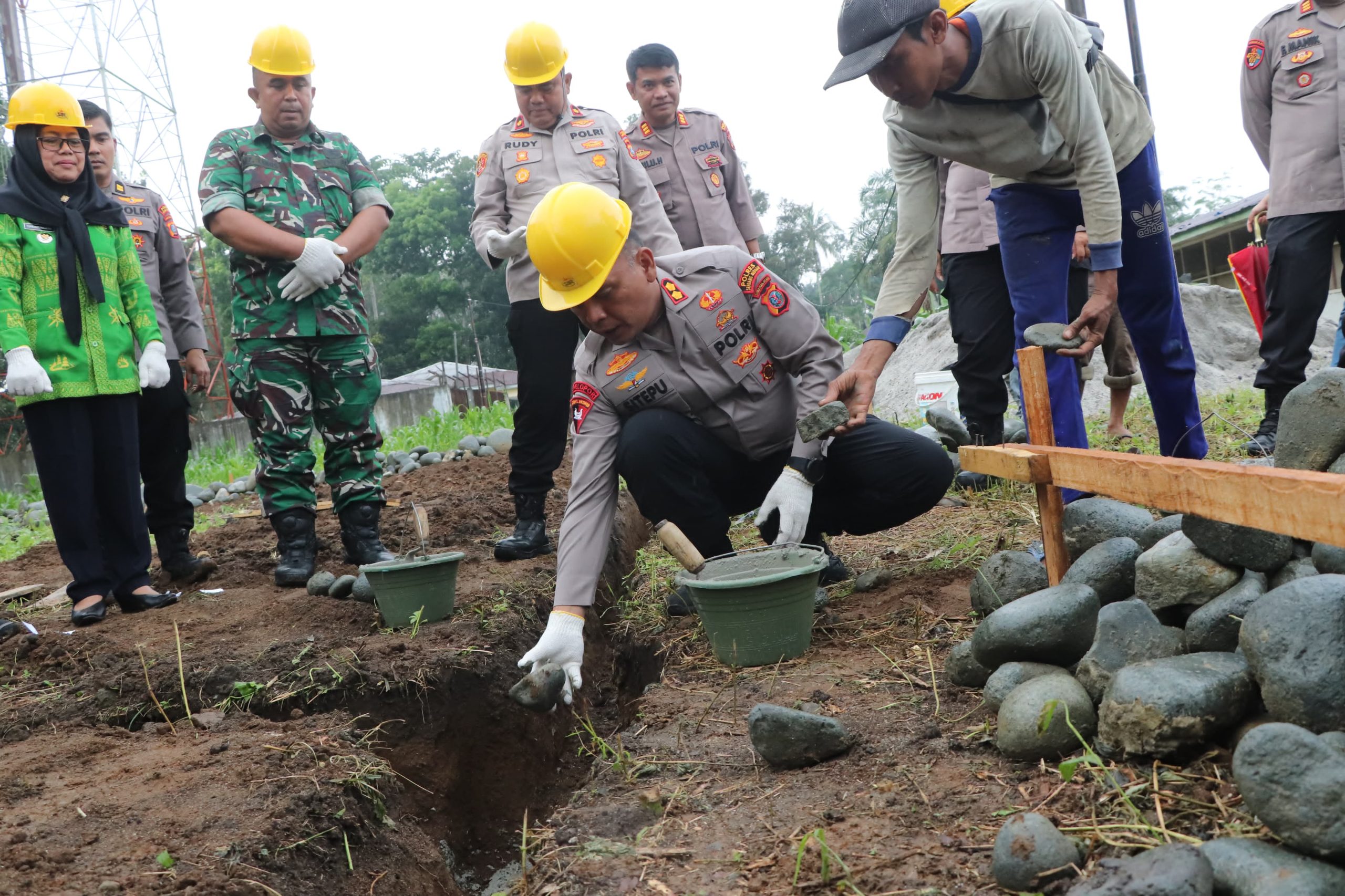 Groundbreaking dipimpin Kapolres Serdang Bedagai AKBP Jhon Sitepu, didampingi Wakapolres Kompol Rudy Candra, Kapolsek Kotarih AKP A.M. Purba, pejabat utama Polres Sergai, serta unsur Forkopimcam Kotarih.
