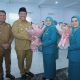 Wagubsu H Surya BSc didampingi istri Ny Hj Titiek Sugiarti Surya berfoto bersama Bupati Asahan Taufik Zainal Abidin Siregar S.Sos MSi dan Wakil Bupati Rianto SH MAP serta pengurus TP PKK Asahan dalam acara malam pengantar tugas dirinya menjadi Wagubsu yang digelar Pemkab Asahan di Pendopo Rumah Dinas Bupati Asahan, Selasa malam (06/05/2025).(gan)