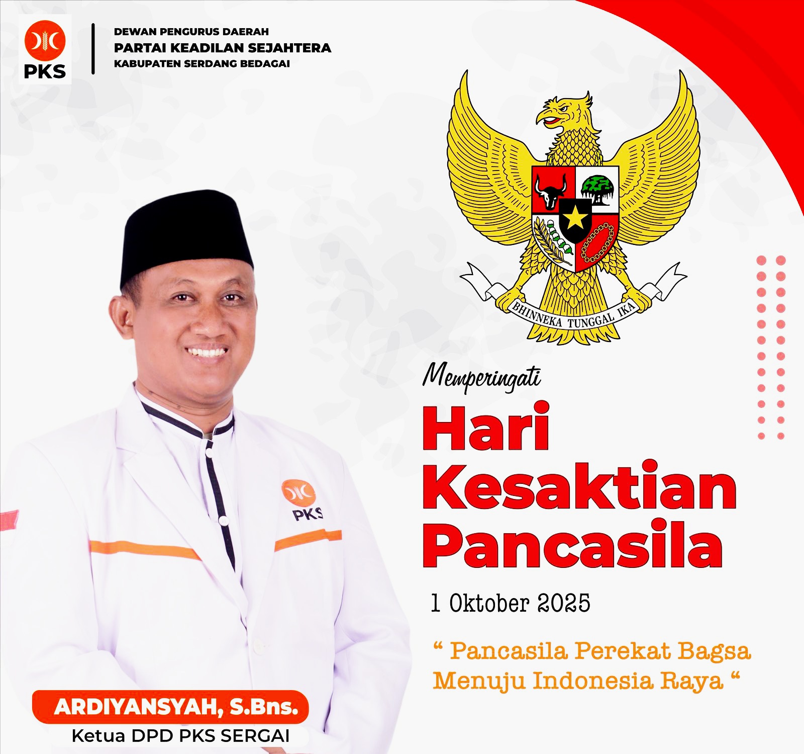 Dewan Pengurus Daerah (DPD) Partai Keadilan Sejahtera (PKS) Kabupaten Serdang Bedagai (Sergai) melalui ketuanya, Ardiyansyah, S.Bns., menegaskan kembali peran sentral Pancasila sebagai perekat bangsa yang kokoh menghadapi berbagai ancaman ideologi, sejalan dengan tema nasional “Pancasila Perekat Bangsa Menuju Indonesia Raya.”