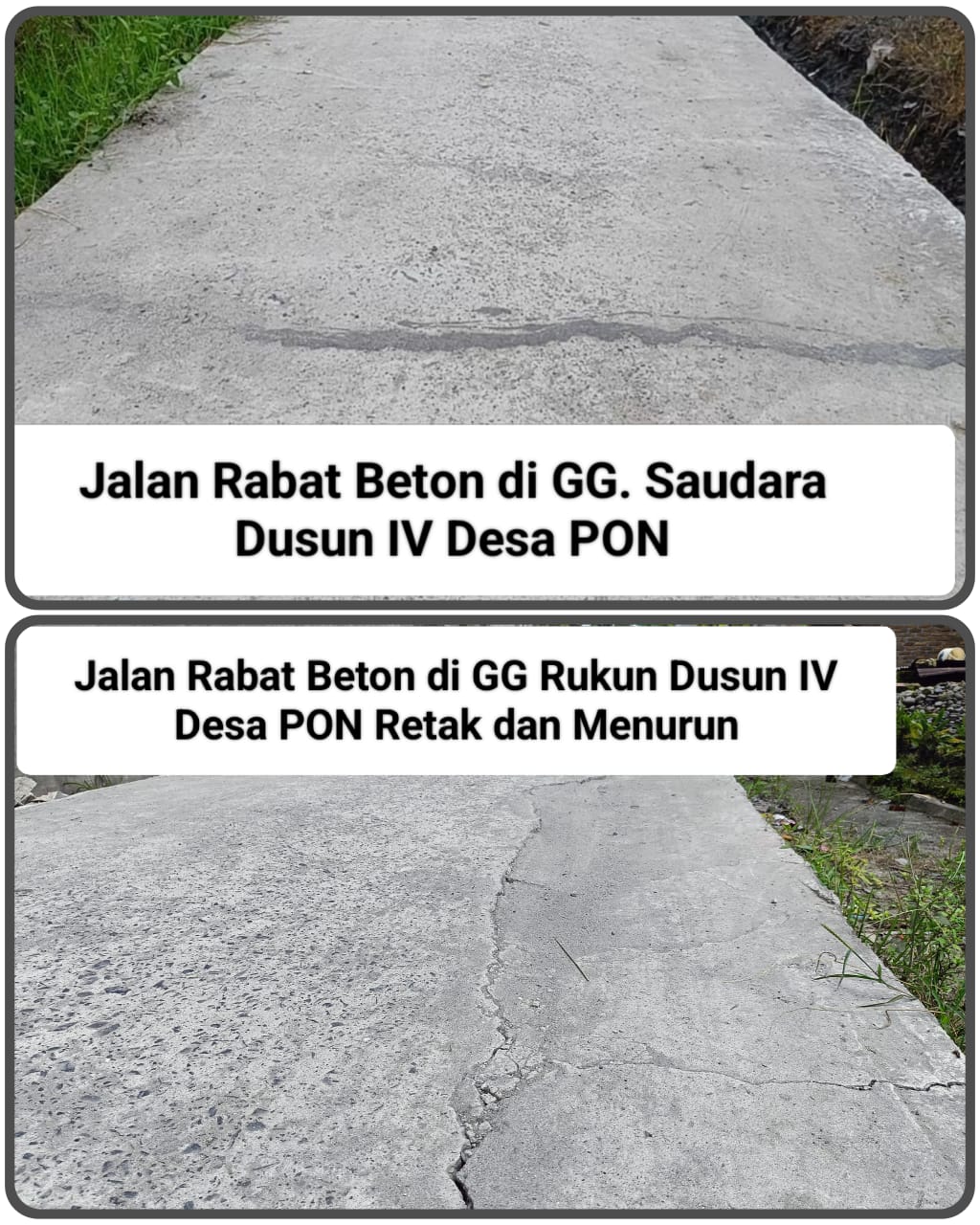 Jalan Rabat Beton di Desa Pon Cepat Rusak, Warga Minta Kejari Sergai Turun Tangan