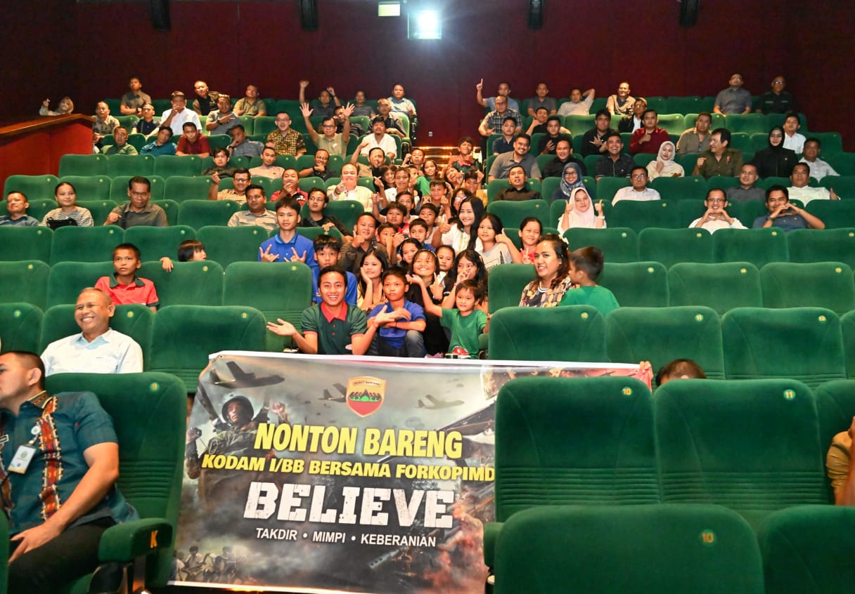 TERITORIAL24.COM, MEDAN — Kapolda Sumatera Utara Irjen Pol Drs. Whisnu Hermawan Februanto, S.I.K., M.H., bersama Pangdam I/Bukit Barisan Mayjen TNI Rio Firdianto, Gubernur Sumatera Utara M. Bobby Afif Nasution, unsur Forkopimda Provinsi Sumatera Utara, serta siswa-siswi SMP dan SMA Kota Medan menghadiri kegiatan nonton bareng (nobar) film “Believe” di Bioskop Delipark XXI Medan, Jumat (1/8/2025).
