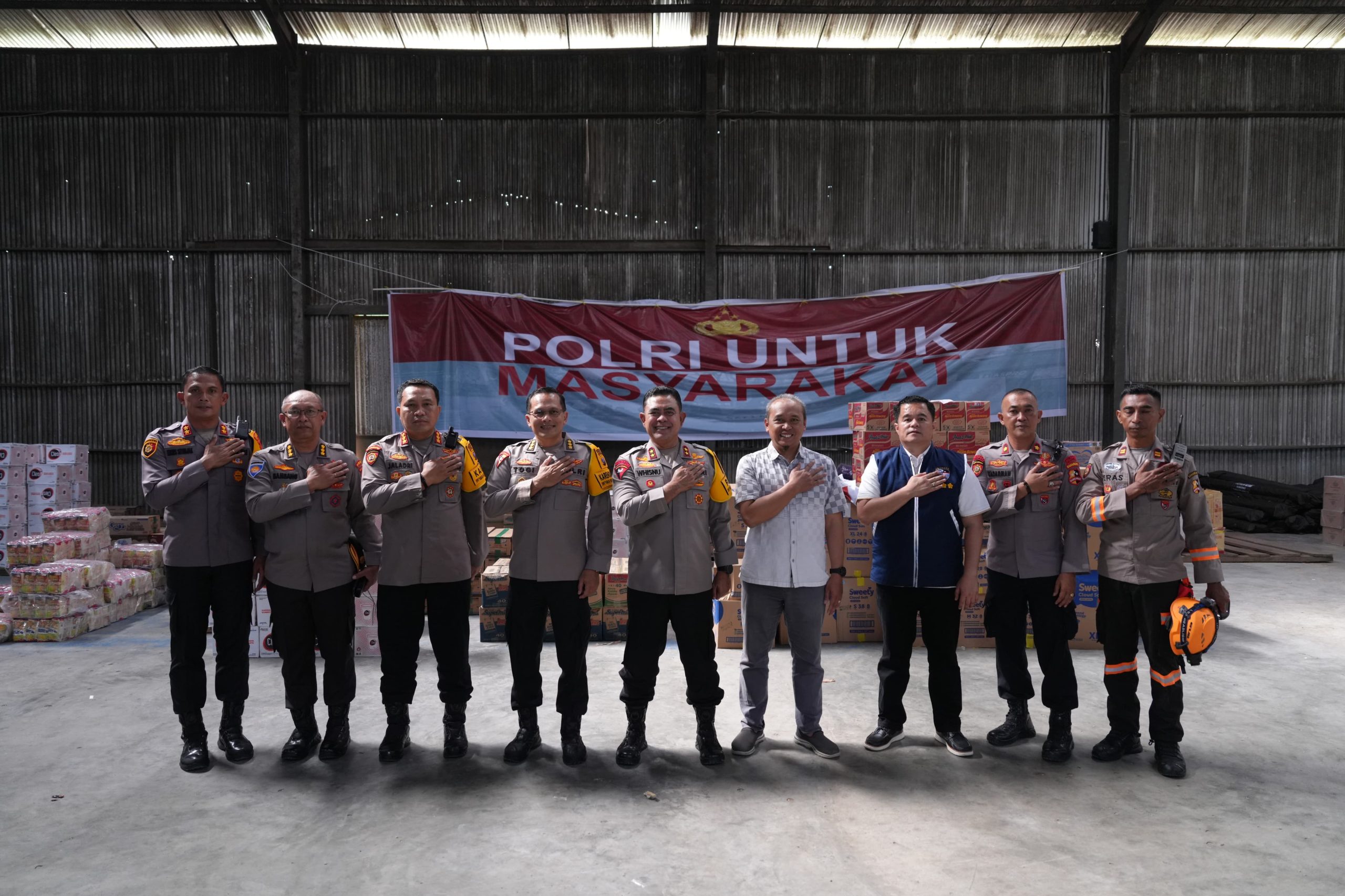 TERITORIAL24.COM, TAPANULI UTARA — Kapolda Sumatera Utara Irjen Whisnu Hermawan Februanto meninjau gudang logistik bantuan sosial di kawasan Bandara Silangit, Taput, Senin (1/12/2025) guna memastikan kelancaran penyaluran bantuan ke wilayah terdampak bencana di Tapanuli Tengah dan Kota Sibolga.