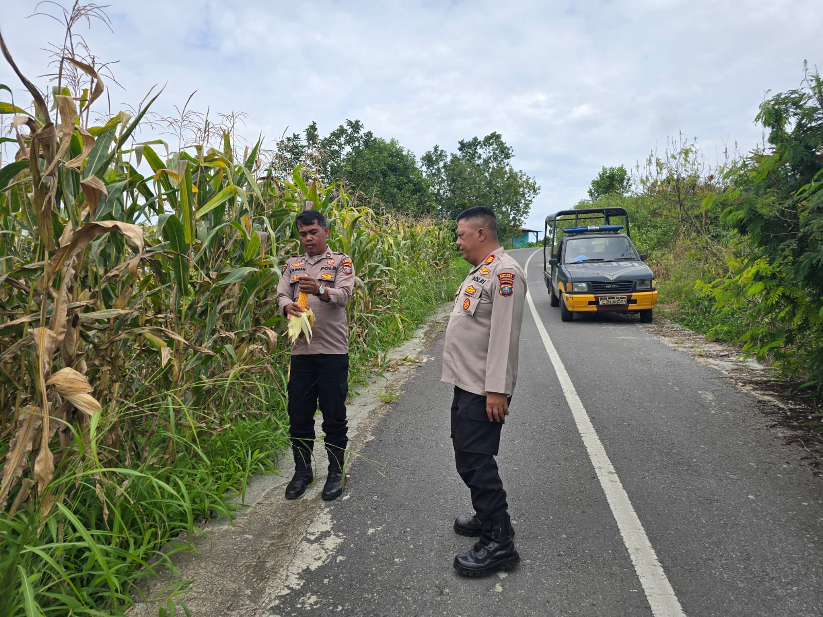 “Hasil pengecekan menunjukkan pertumbuhan tanaman jagung sangat baik. Tanaman tumbuh subur dengan buah yang tergolong berkualitas, sesuai dengan proses perawatan seperti pembersihan lahan, pemupukan, dan pemberian racun hama yang rutin dilakukan,” ujar Aiptu Widodo mengutip keterangan Kapolsek Salak.
