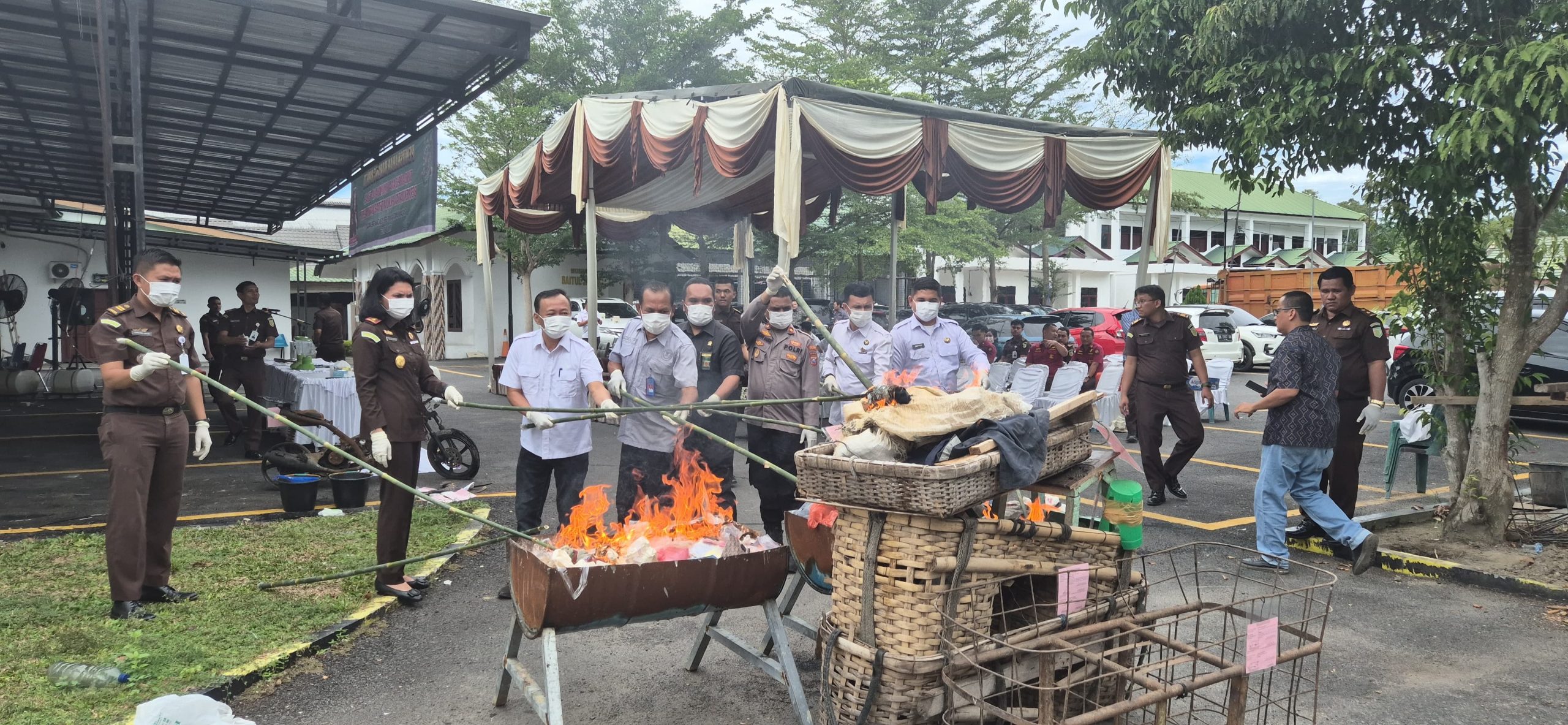 Acara pemusnahan dihadiri oleh Kepala Kejaksaan Negeri Sergai Rufina Ginting, Ketua Pengadilan Negeri Sei Rampah, serta perwakilan dari Polres Sergai, BNN, Dinas Kesehatan, dan Lembaga Pemasyarakatan Lubuk Pakam dan Tebing Tinggi.(Akbar)