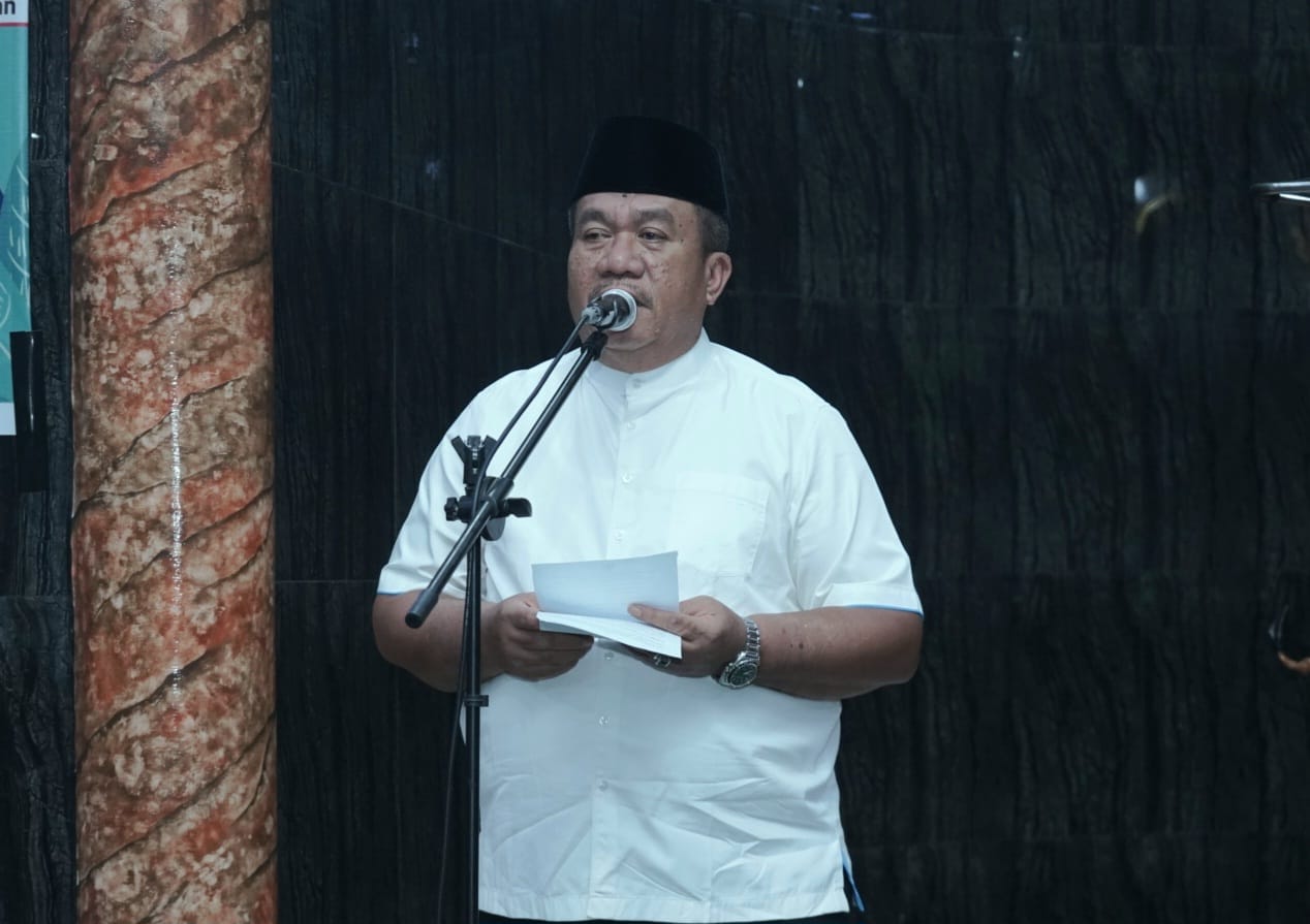 Bupati Asahan Taufik Zainal Abidin Siregar S.Sos, MSi ketika menyampaikan sambutan di acara dzikir dan doa kebangsaan serta peringatan Maulid Nabi Muhammad SAW 1447 H yang digelar Kemenag Asahan di Masjid Raya Kisaran, Kamis (04/09/2025) malam. (gan).