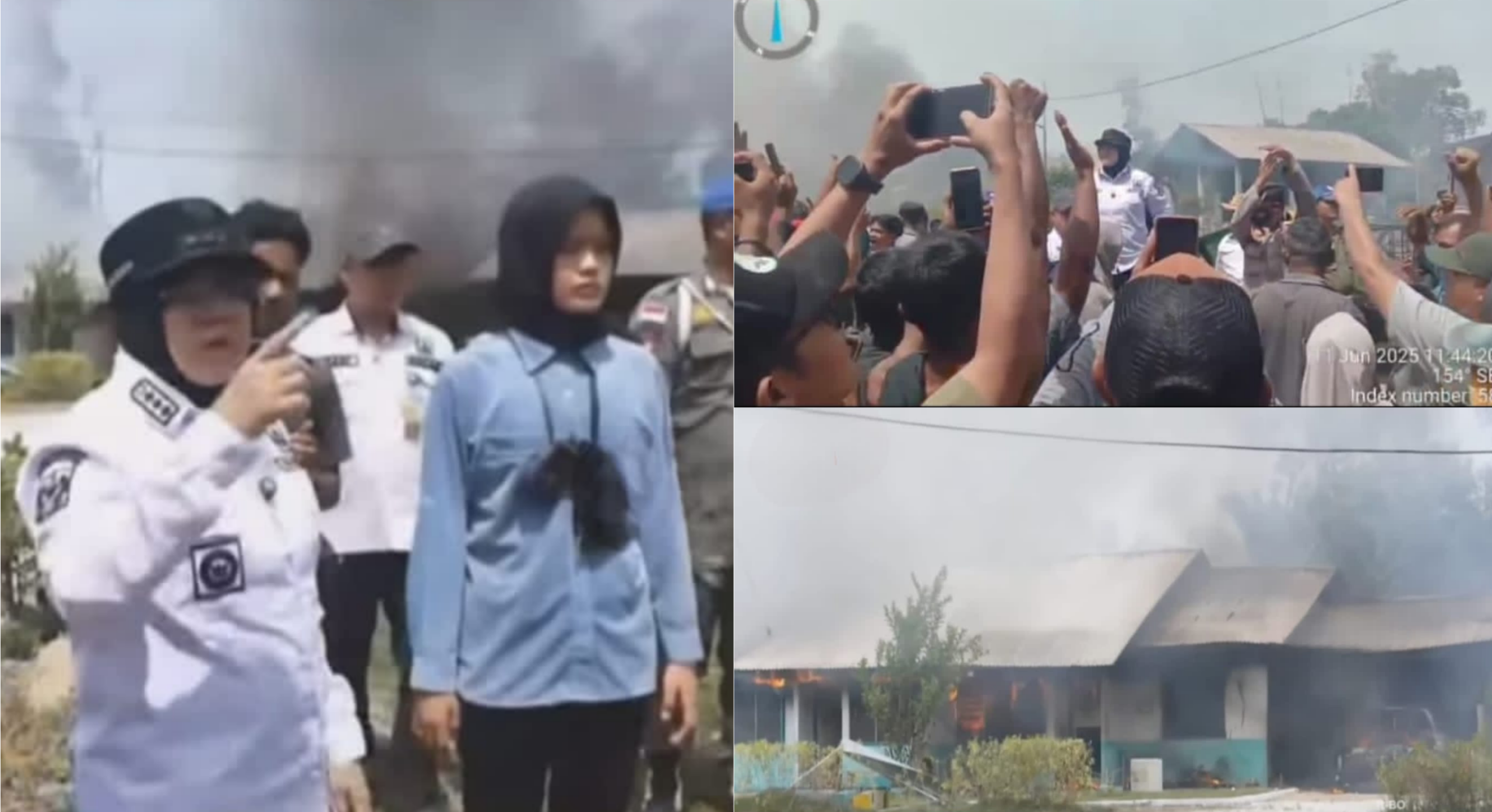 Bupati Siak, Afni Zulkifli, turun langsung ke lokasi kejadian di tengah kerusuhan yang berlangsung.
