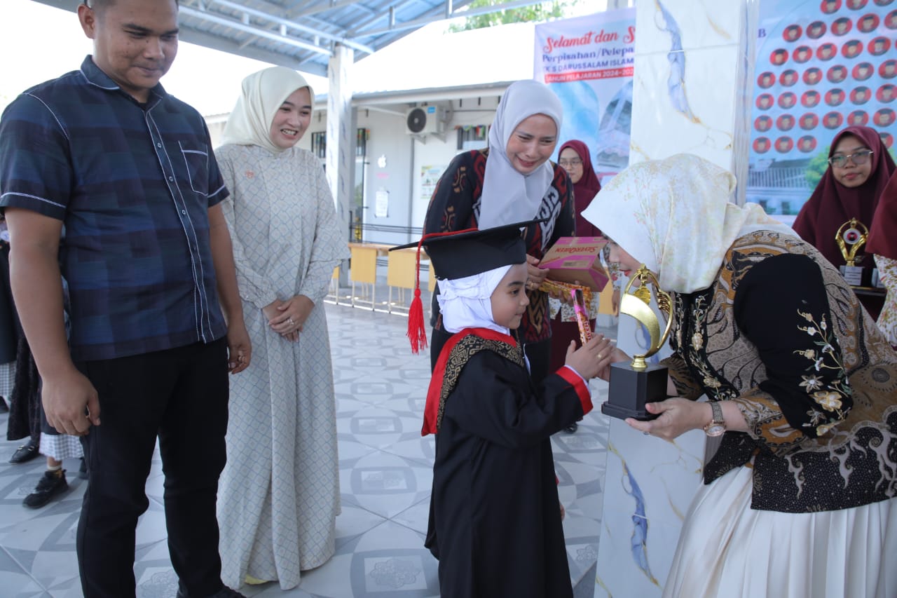 TERITORIAL24.COM, Asahan-Ketua TP. PKK Asahan Ny. Yusnila Indriati Taufik menghadiri pelepasan peserta didik Taman Kanak (TK) B Swasta Darussalam Islamic School (DIS) 2024 – 2025. Acara pelepasan pelajar TK itu digelar di Halaman TK Swasta DIS Kisaran, Kamis (12/06/2025).