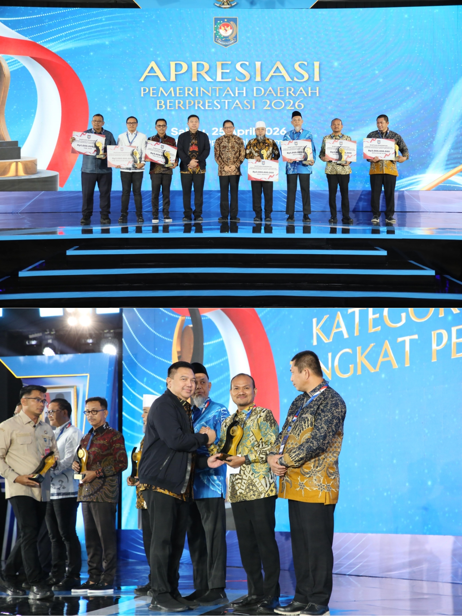 Penghargaan diserahkan oleh Sekretaris Jenderal Kementerian Dalam Negeri, Tomsi Tohir, dan turut disaksikan oleh Menteri Dalam Negeri Muhammad Tito Karnavian. Acara berlangsung di OPI Hotel pada Sabtu malam (25/4/2026).
