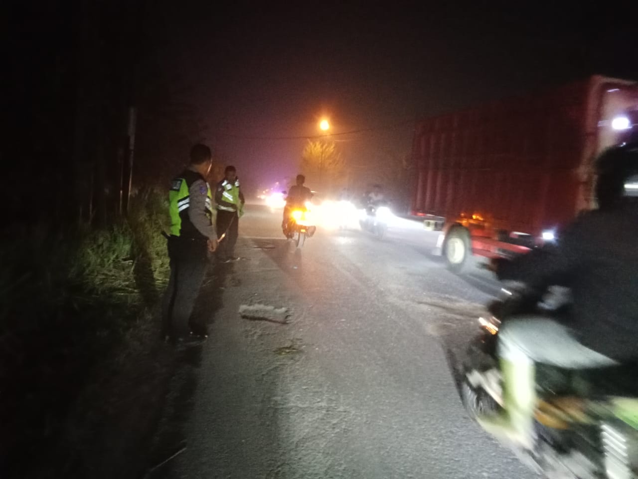 Setibanya di tempat kejadian perkara (TKP), sepeda motor yang dikendara korban menabrak lubang.