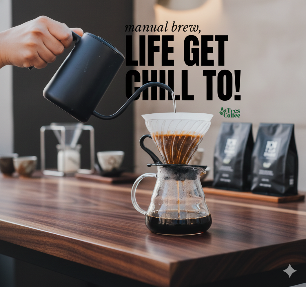 Tres Coffee menangkap semangat ini, dan mewujudkannya melalui sajian Manual Brew.