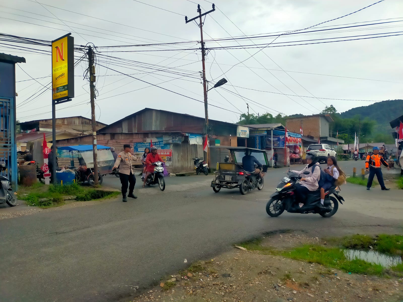 Dari pukul 06.30 sampai 07.35 WIB, mereka melaksanakan kegiatan Strong Point—rutinitas pagi yang tujuannya menjaga kelancaran lalu lintas dan mengurangi risiko kecelakaan.