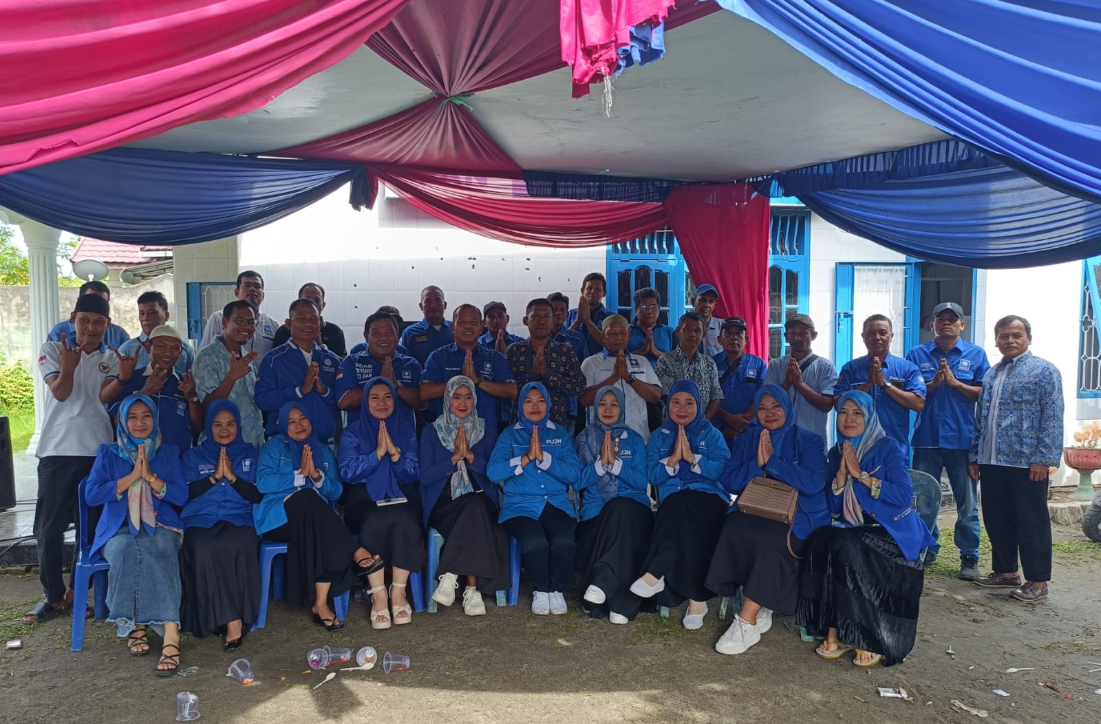 Susana Keluarga Besar PAN Asahan usai mengikuti acara Halal Bi Halal lewat zoom metting dengan Ketua Umum DPP PAN yang digelar di Halaman Kantor DPD PAN Asahan,Minggu (20/04/2025). (gan)