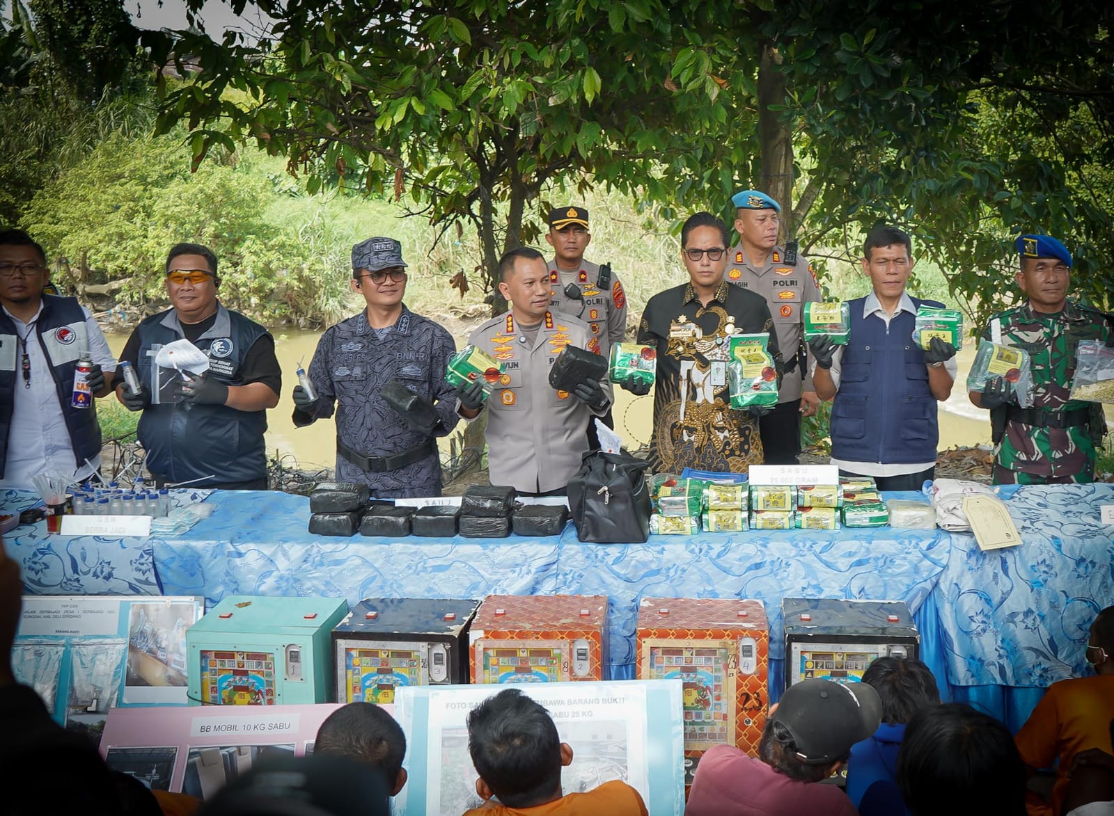 Di sana, tim menangkap seorang bandar berinisial MR. Dari lokasi, ditemukan tiga barak narkoba lengkap dengan alat isap, jarum suntik, dan sistem komunikasi yang diduga digunakan untuk memantau aparat.