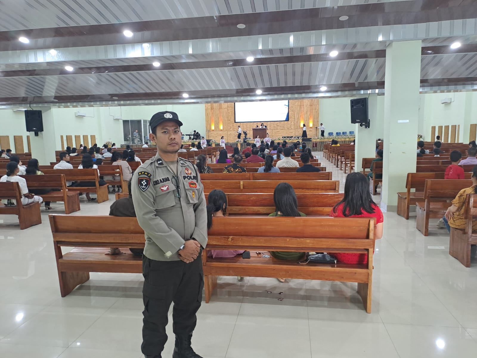 Pengamanan yang dimulai sekitar pukul 09.00 WIB ini bertujuan untuk memberikan rasa aman dan nyaman bagi umat Kristiani yang sedang beribadah.