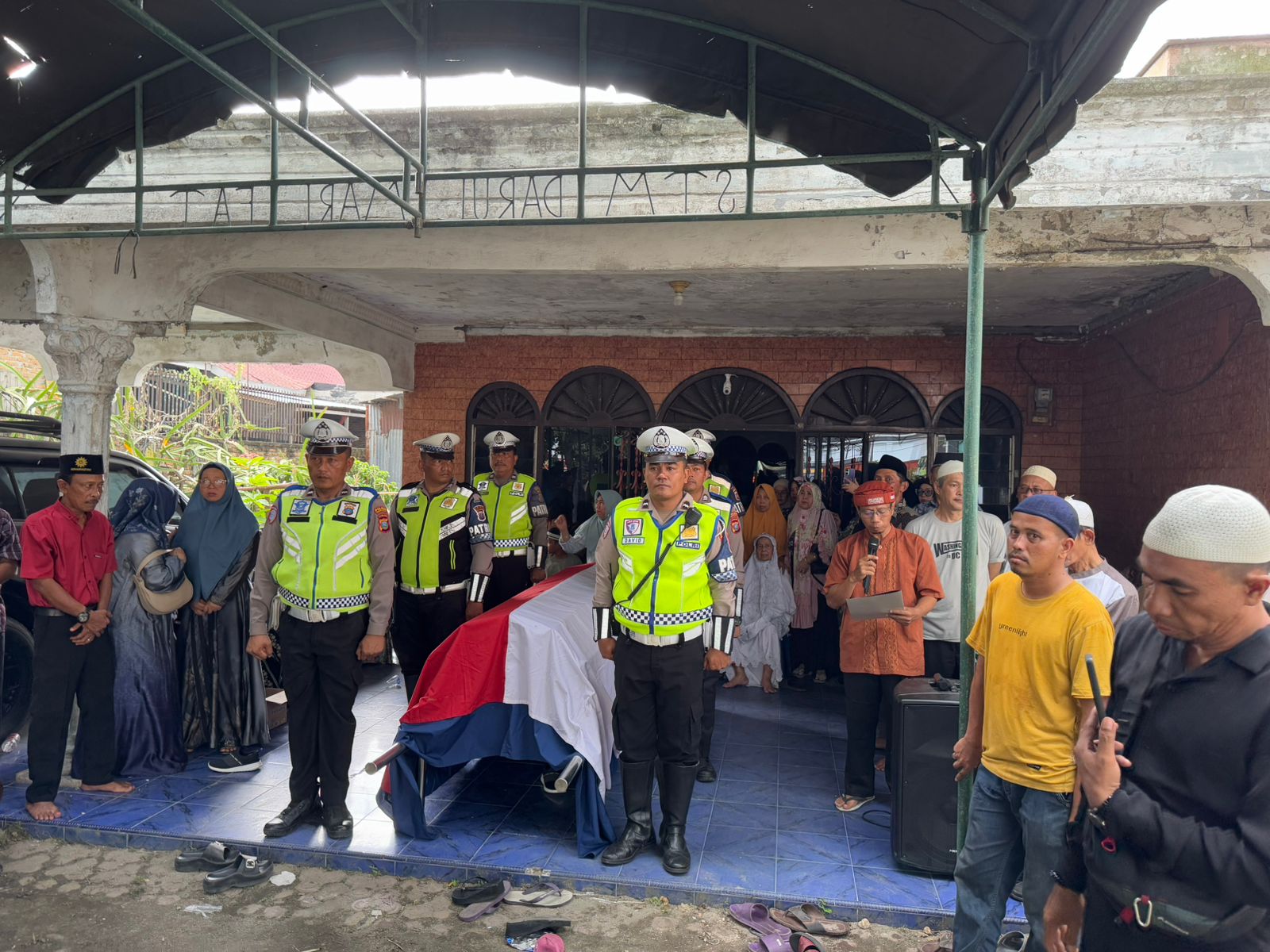 Upacara pemberangkatan dimulai pukul 14.30 WIB dari rumah duka di Dusun VII, Desa Firdaus. Rangkaian prosesi berlangsung khidmat, dihadiri jajaran anggota Polres, kerabat, dan warga sekitar. Bertindak sebagai Inspektur Upacara, AKP Andi Sujenderal, SH, MH, yang juga mewakili pimpinan Polres dalam menyampaikan duka cita mendalam kepada keluarga almarhum.