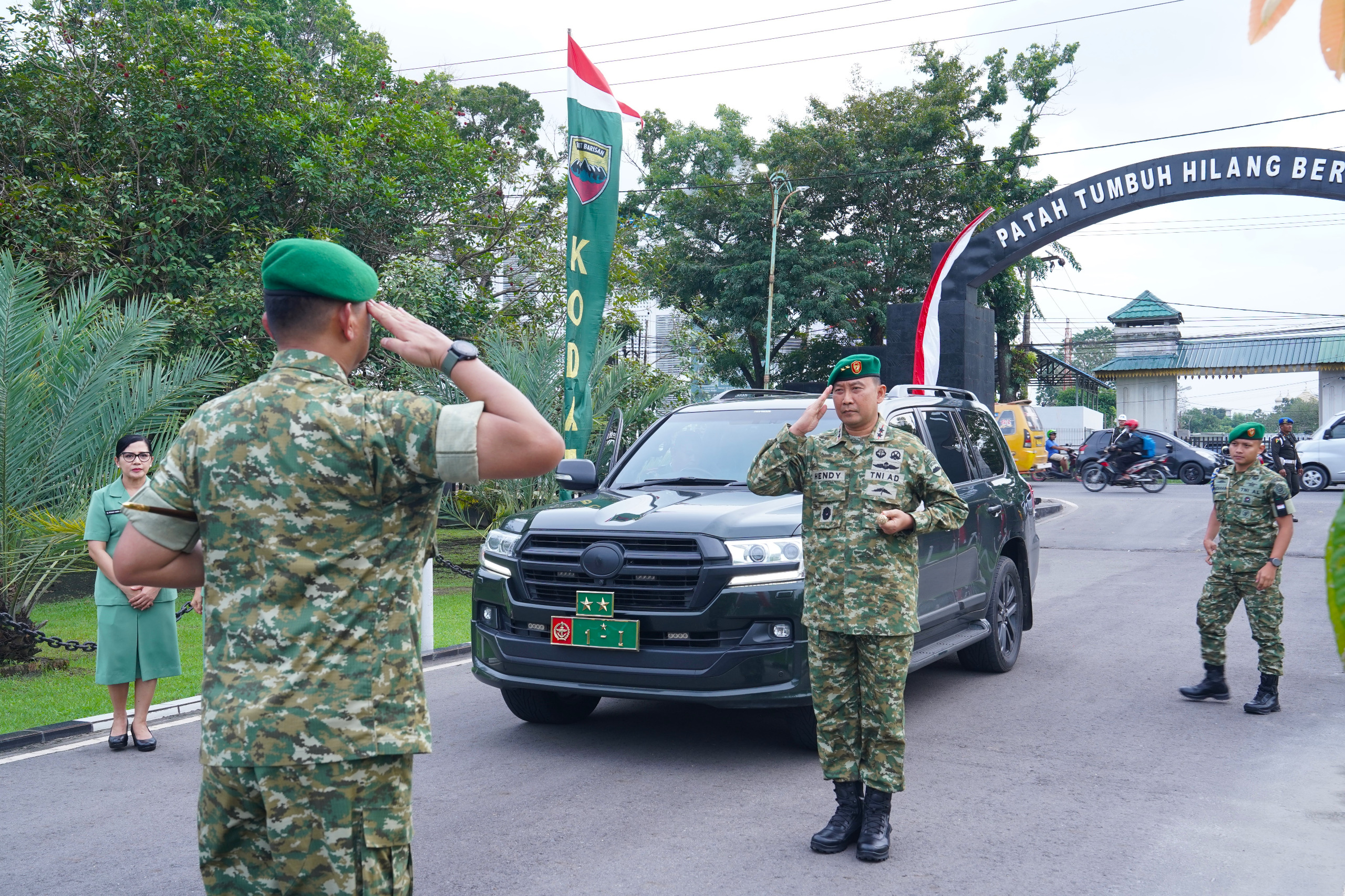 Setibanya di pintu gerbang Makodam I/BB, Mayjen TNI Hendy Antariksa menerima laporan resmi dari Dandenmadam I/BB, dilanjutkan dengan penghormatan dan laporan dari Pos I serta regu jajar.