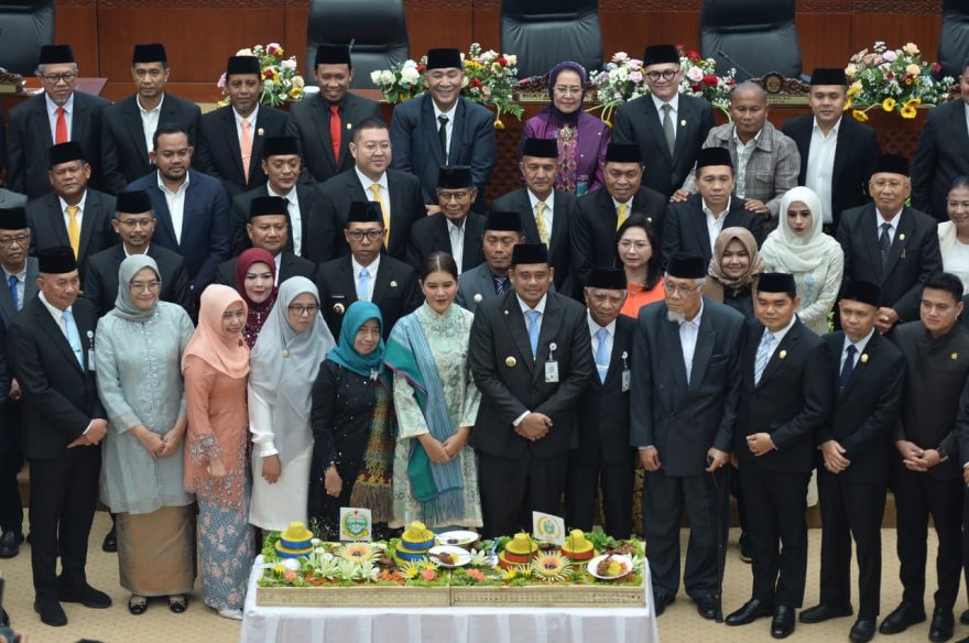 Wakil Bupati Asahan Rianto SH MAP bersama kepala daerah kabupaten dan kota serta Gubsu dan Wagubsu dalam acara pemotongan tumpeng Hari Jadi Sumut ke – 57 di Gedung DPRD Sumut, Rabu (15/04/2026).(gan).