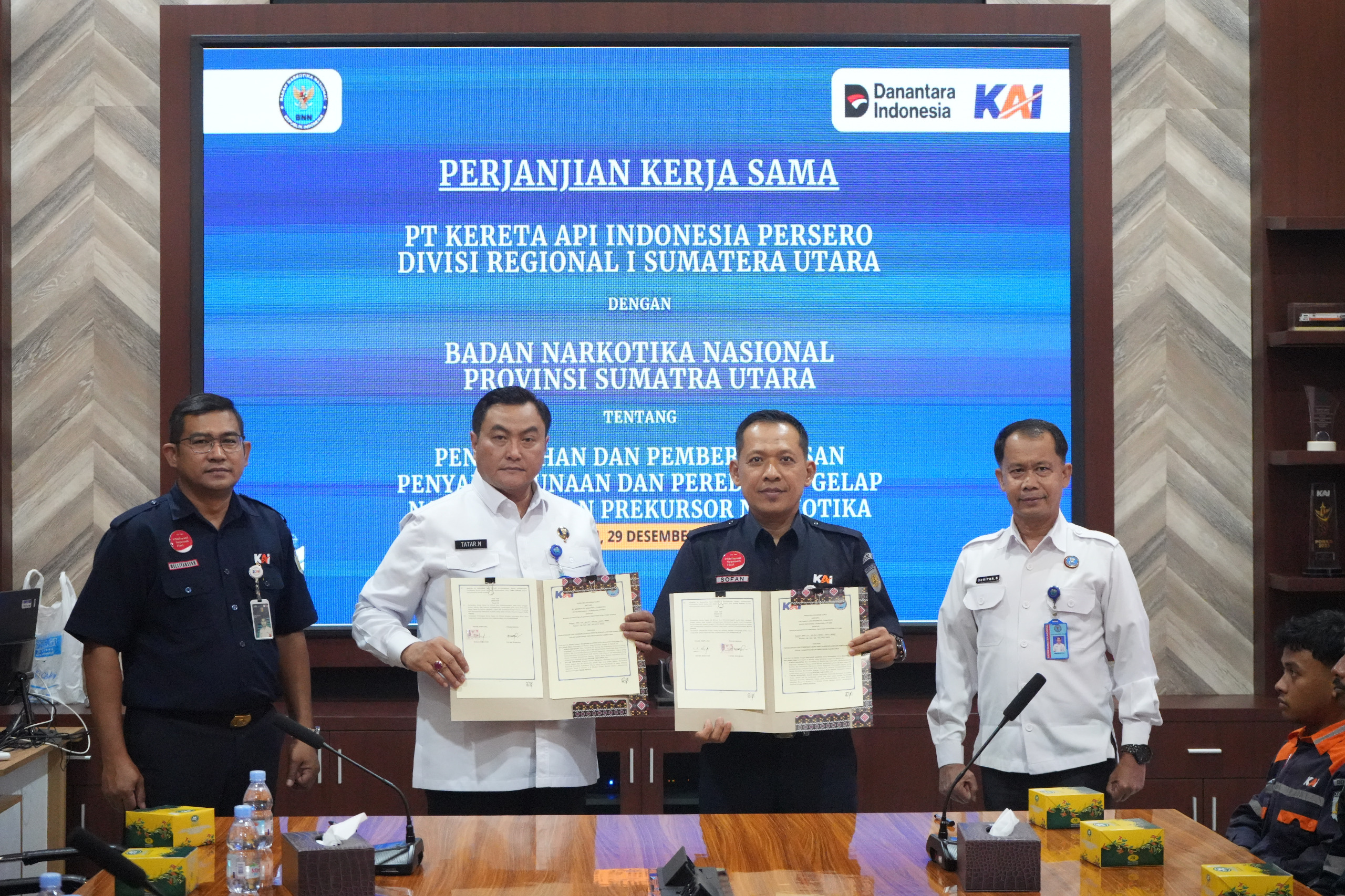 Langkah besar ini ditandai dengan penandatanganan nota kesepahaman oleh Vice President KAI Divre I Sumut, Sofan Hidayah, bersama Kepala BNNP Sumut, Brigjen Pol. Tatar Nugroho, di Kantor KAI Divre I Sumatera Utara yang berada di Kota Medan pada Senin (29/12/2025).