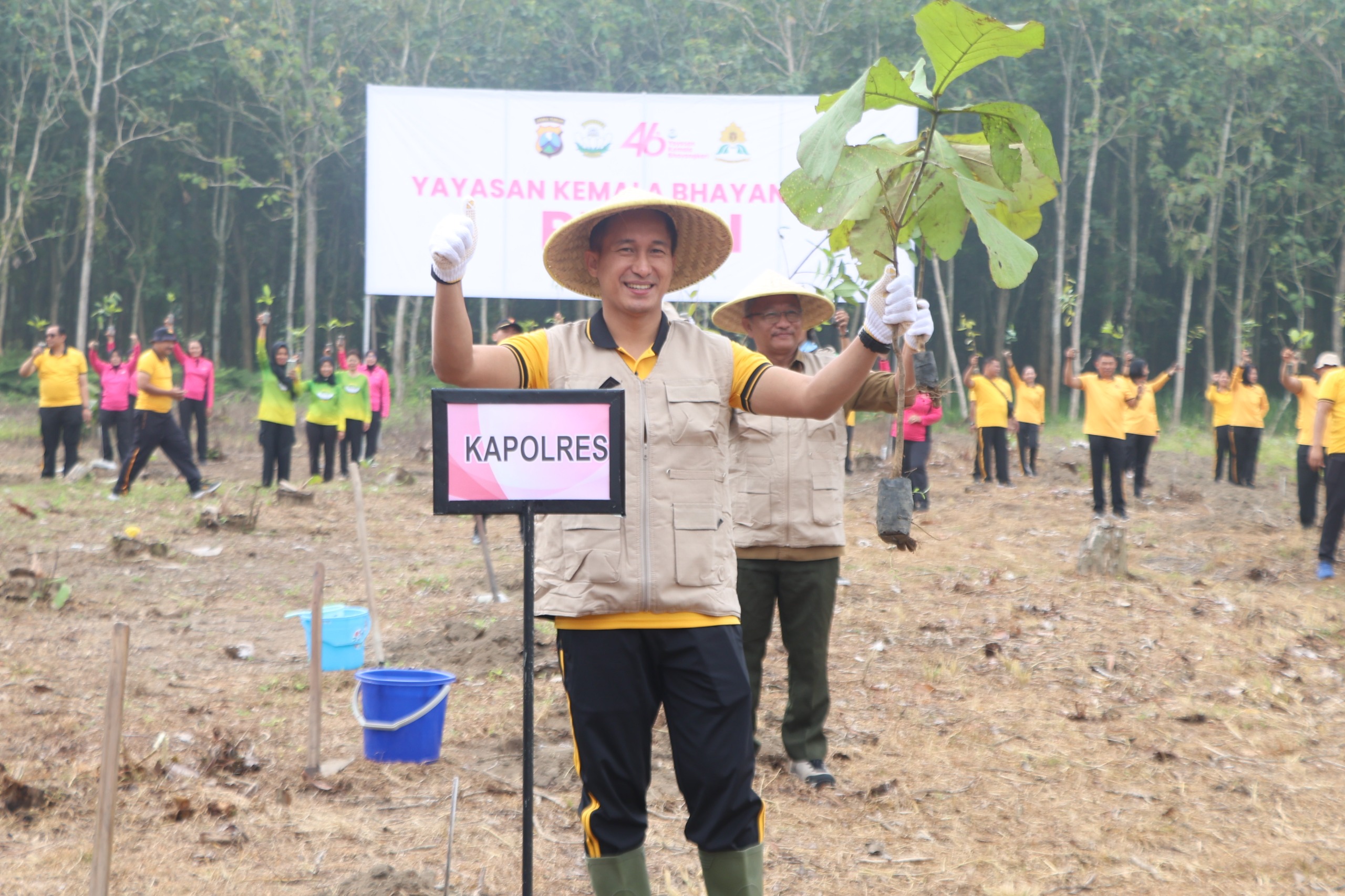 Momentum ini juga ditandai dengan penyerahan simbolis cinderamata berupa rompi dan topi, sebelum dilakukan penanaman pohon secara simbolis oleh Kapolres dan Ketua Bhayangkari bersama para peserta.