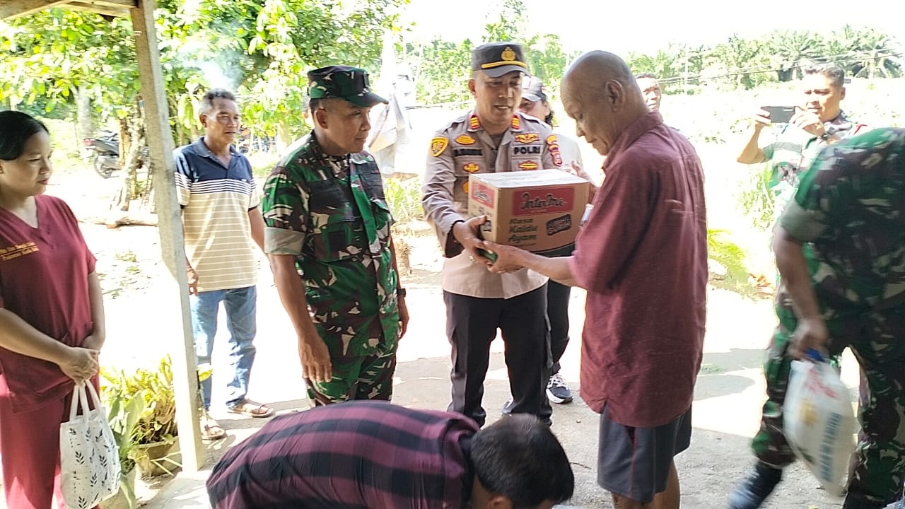 Polsek Tanjung Beringin menyalurkan bantuan berupa enam kotak mi instan, enam karung beras, enam bungkus gula pasir, dan enam bungkus teh.