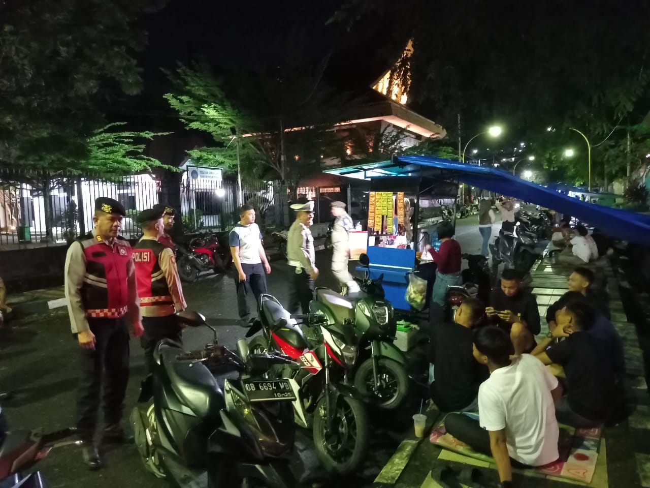 Dalam pelaksanaan patroli, personel gabungan turut menyampaikan imbauan kamtibmas kepada warga yang sedang menikmati malam minggu di ruang publik.
