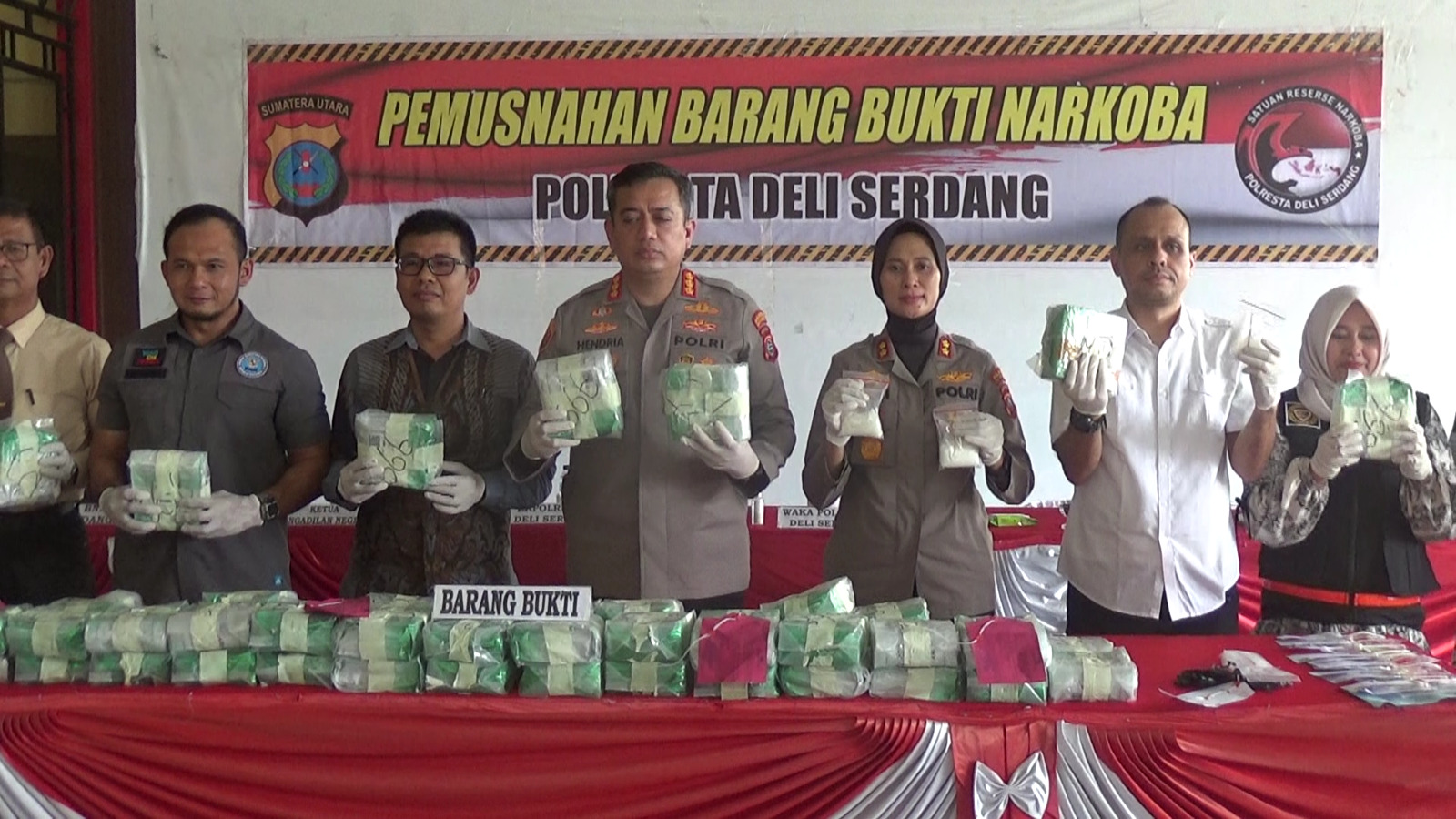 Pemusnahan dipimpin langsung oleh Kapolresta Deli Serdang Kombes Pol Hendria Lesmana SIK, didampingi Waka Polresta Deli Serdang AKBP Juliani Prihatini SIk, Kasat Narkoba Kompol Sebastian Saragih Sik, dan perwakilan Kejaksaan Deli Serdang, BNN Deli Serdang, Pengadilan, Dinas Kesehatan dan lainnya.