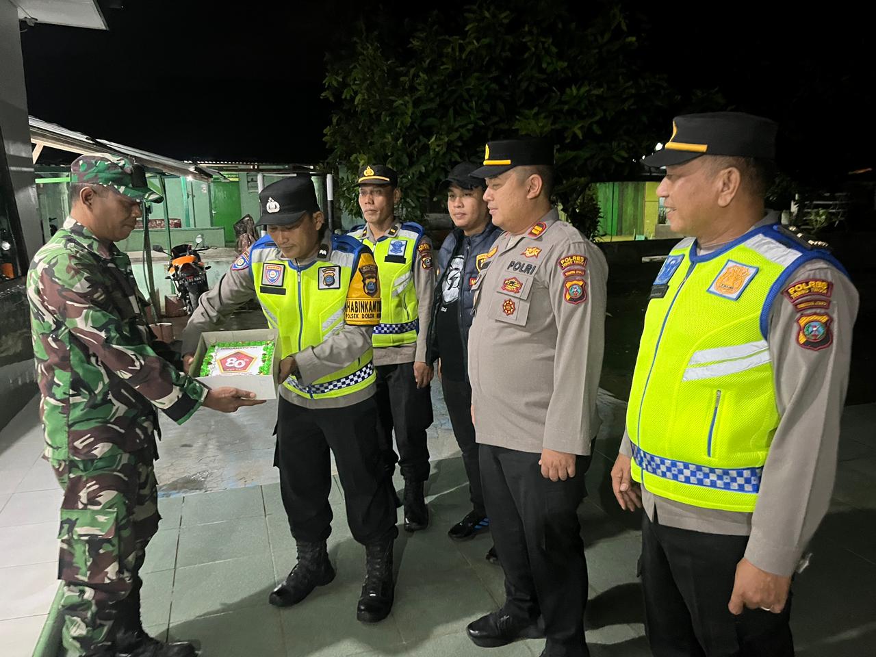Kapolsek Iptu Herman Sentosa, dalam kesempatan tersebut, menyampaikan ucapan selamat Dirgahayu TNI ke-80 Tahun.
