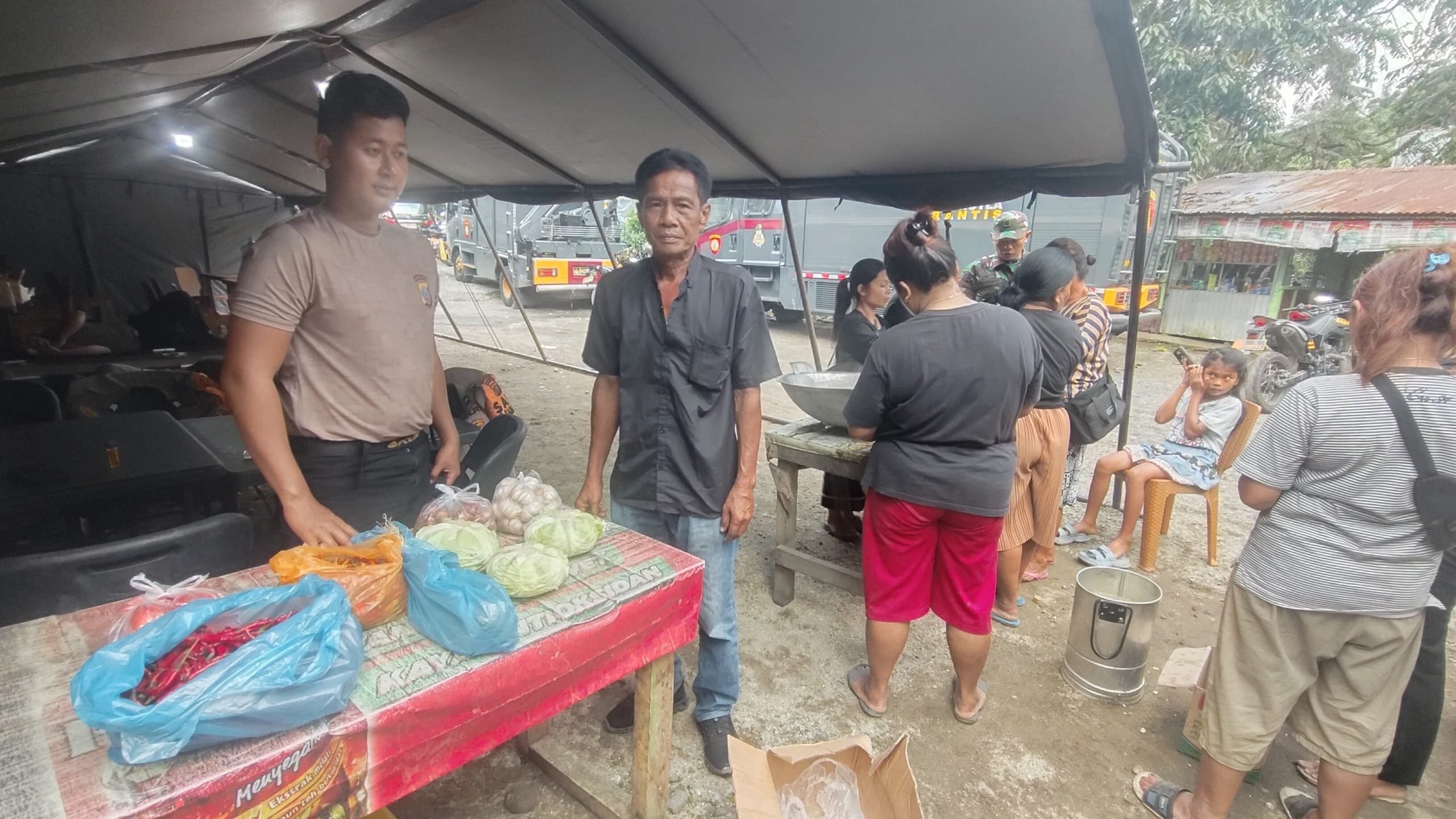 Pada Rabu pagi (8/4/2026) sekitar pukul 07.30 WIB, tenda pengungsian telah didirikan untuk menampung warga yang kehilangan tempat tinggal.