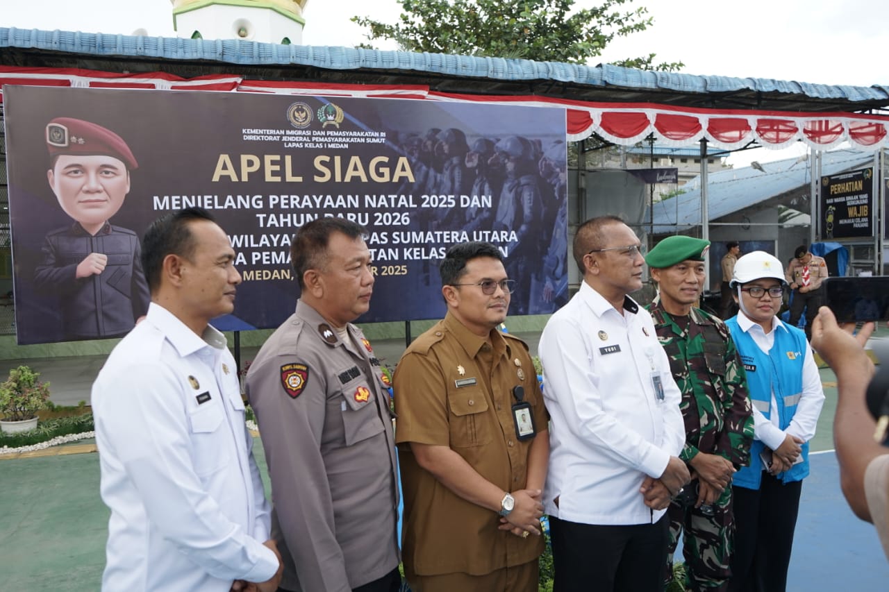 TERITORIAL24.COM, MEDAN — Kantor Wilayah Direktorat Jenderal Pemasyarakatan Sumatera Utara menggelar Apel Siaga menjelang perayaan Natal 2025 dan Tahun Baru 2026 di Lapas Kelas I Tanjung Gusta Medan, Senin, 22 Desember 2025.