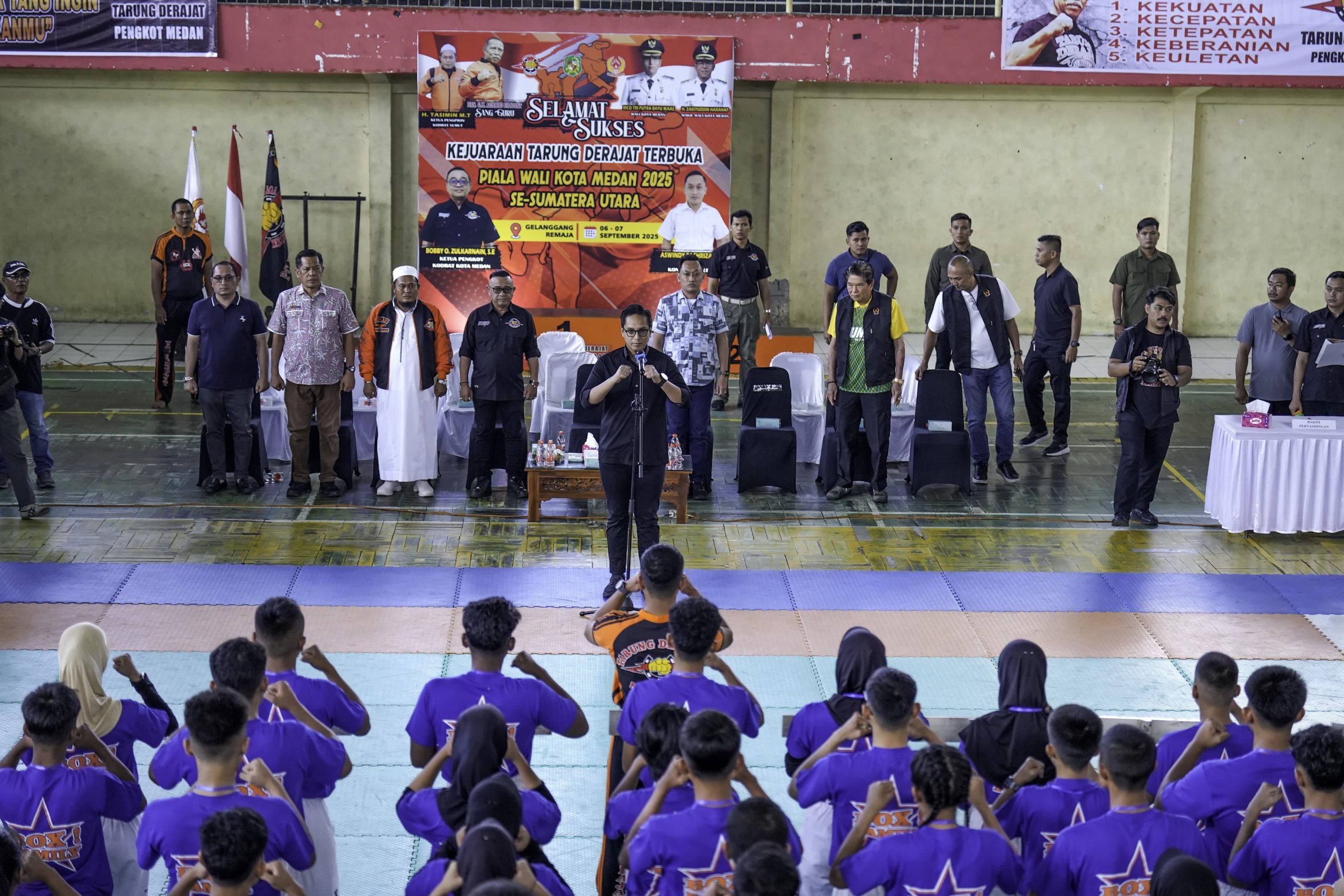 Hadir juga dalam pembukaan, Ketua Pengprov KODRAT Sumut Tasimin, Kadispora Medan Tengku Chairuniza, Kasat Pol PP Medan Rakhmat Adisyah Putra Harahap, dan Camat Medan Timur Noor Alfi Pane.(Anggi)