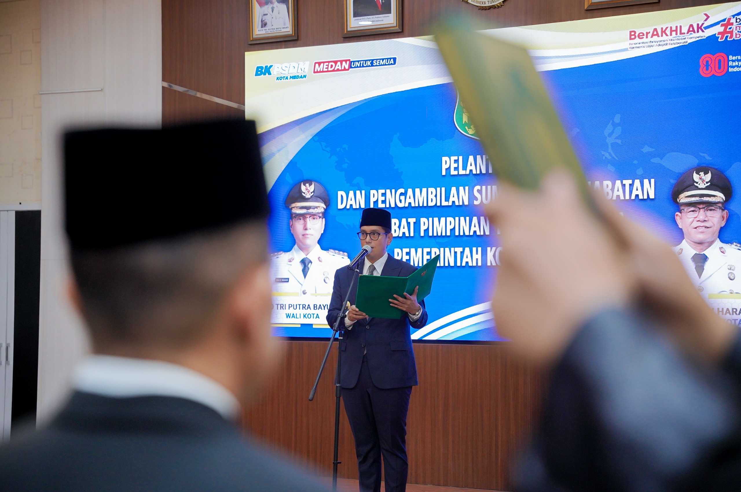 Wali Kota Medan, Rico Tri Putra Bayu Waas, resmi melantik sembilan pejabat Pimpinan Tinggi Pratama di lingkungan Pemko Medan, Kamis (21/8/2025).