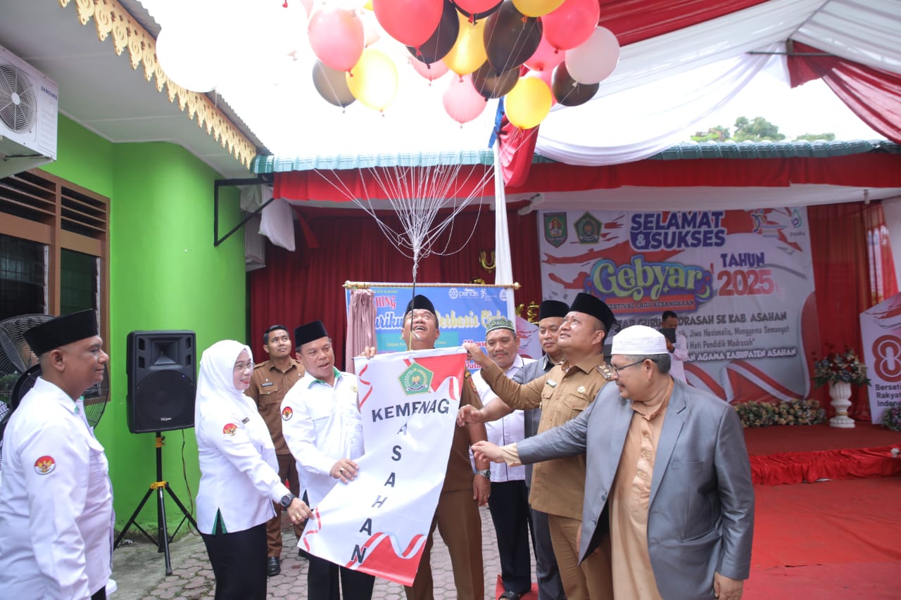 Bupati Asahan taufik Zainal Abidin Siregar S.Sos, MSi didamping Wakil Bupati Rianto SH MAP bersama Kakankemenag H Abdul Manan MA dan Ketua DPRD Efi Irwansyah Pane MKM dan Ketua MUI serta Imtaq Asahan melepas balon udara sebagai simbol Launching Kurikulum Berbasis Cinta dalam acara pembukaan Gelar Gebyar Festival Lagu Kebangsaan dalam rangka peringatan HUT – RI ke – 80 di Halaman Kantor Kemenag Asahan, Senin (04/08/2025).(gan)
