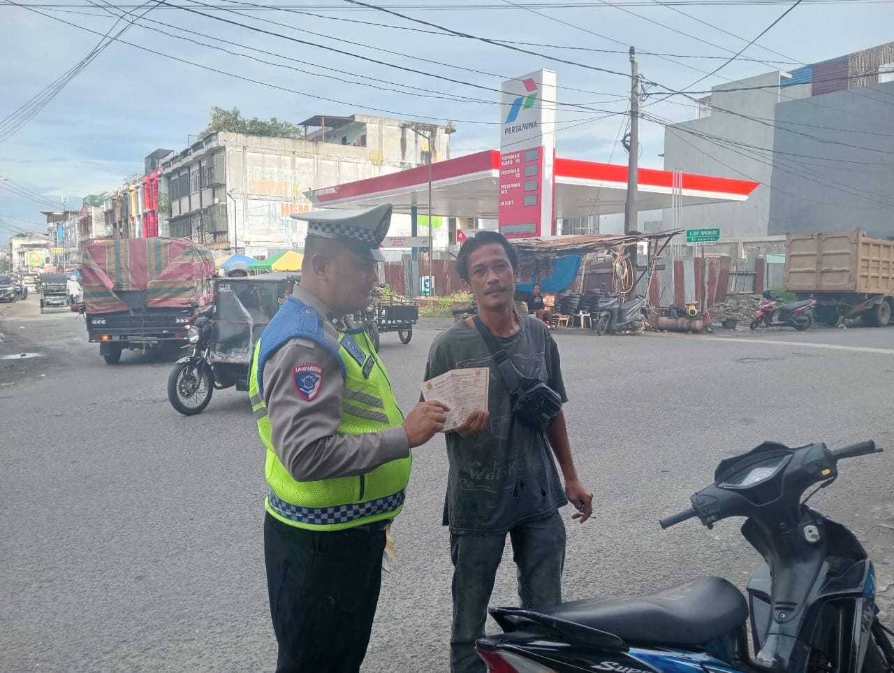 Setiap pengendara yang kedapatan melanggar diberikan selembar teguran sebagai pengingat bahwa keselamatan masih lebih penting daripada buru-buru.