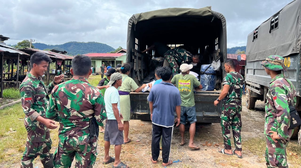 Paket logistik meliputi bantuan dari Menhan, Kasad, kebutuhan bayi, dan pakaian dengan sasaran 360 kepala keluarga.