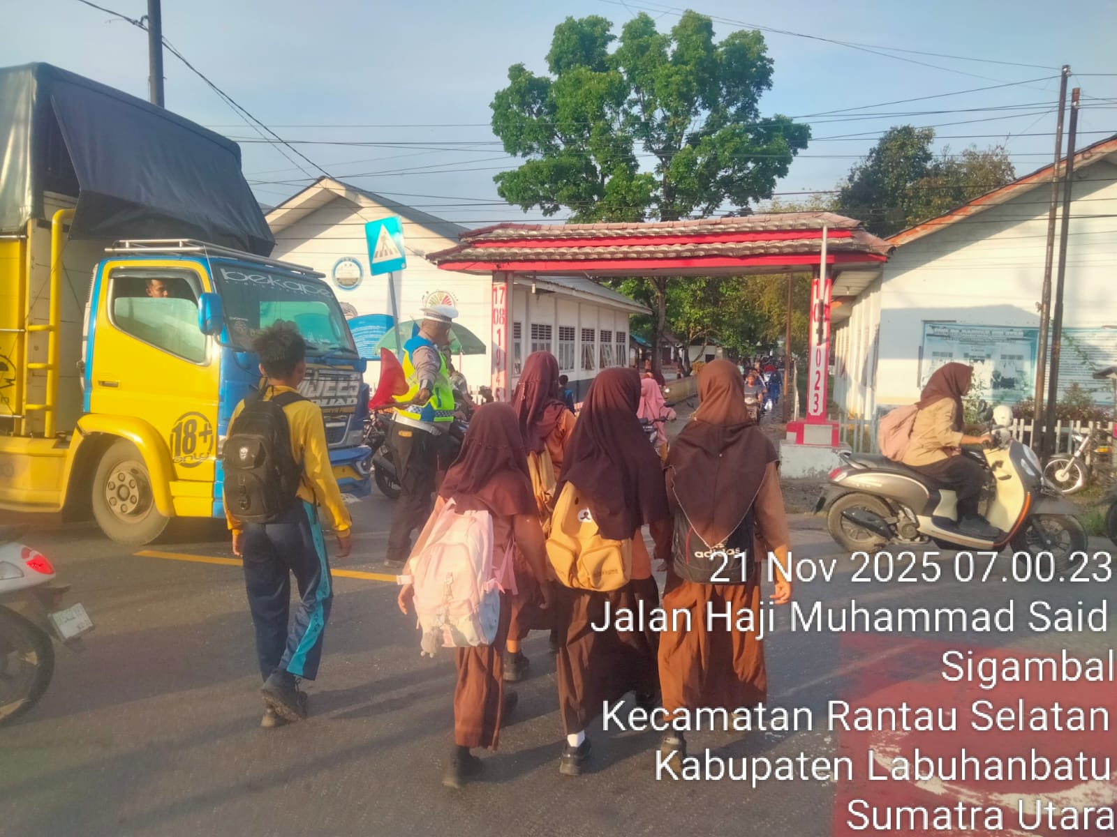 Ini bukan karena warga tiba-tiba kompak bangun lebih pagi, melainkan karena Satuan Lalu Lintas Turjawali Pos Lantas Sigambal Polres Labuhanbatu menggelar strong point sebagai bagian dari Operasi Zebra Toba 2025.