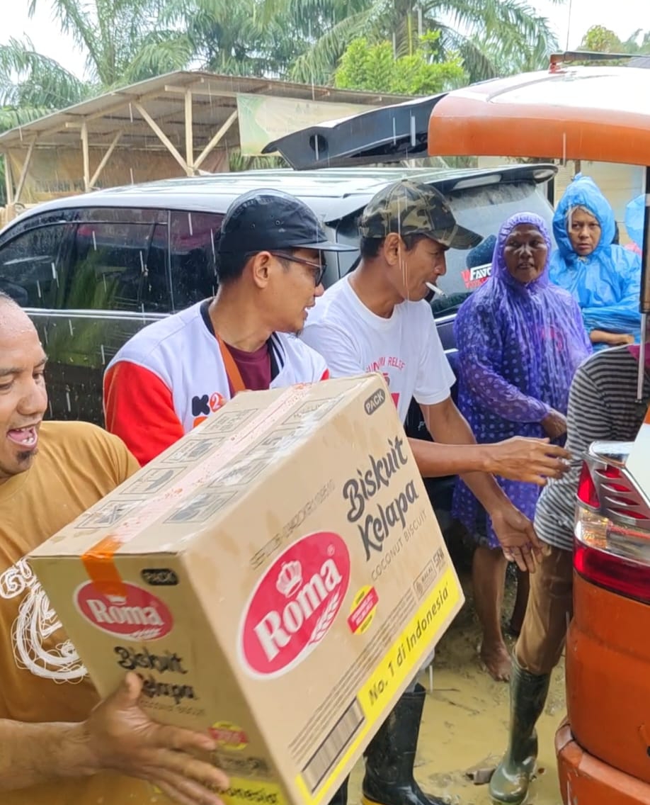 Rombongan menyerahkan bantuan melalui relawan serta perwakilan masyarakat di lokasi terdampak.