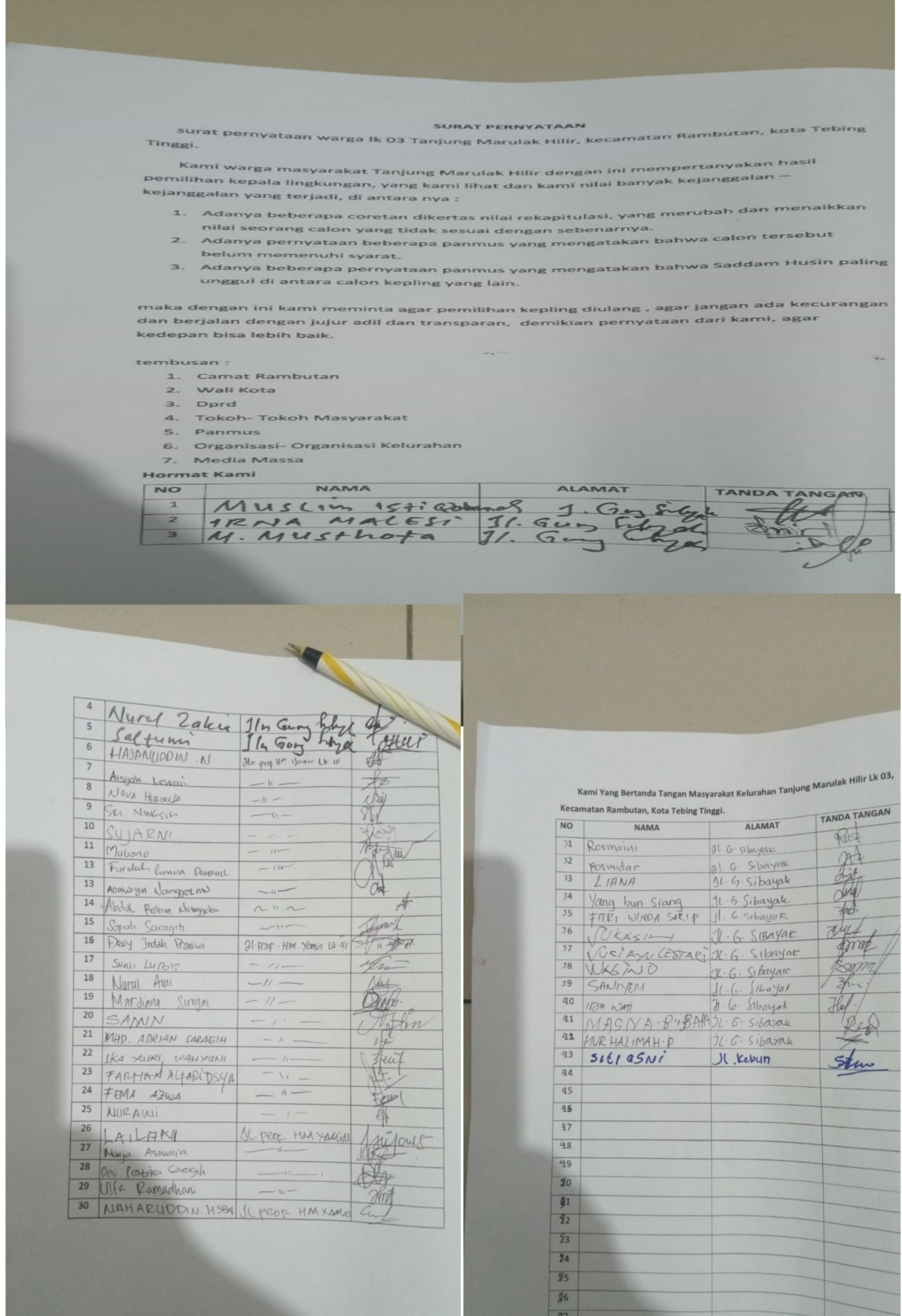 Salah satu titik paling disorot terjadi di Lingkungan 3, Kelurahan Tanjung Marulak Hilir, pada 23 Desember 2025. Warga mempertanyakan keabsahan hasil rekapitulasi penilaian yang dinilai janggal dan mencederai rasa keadilan.